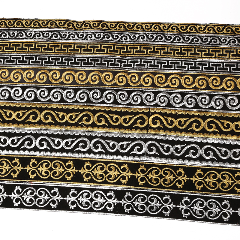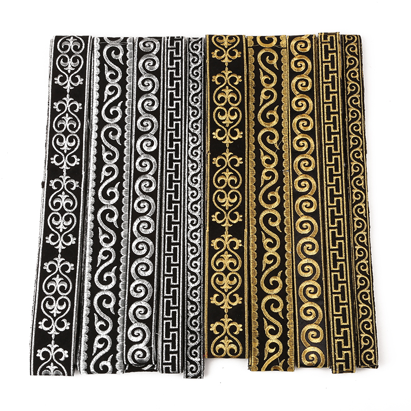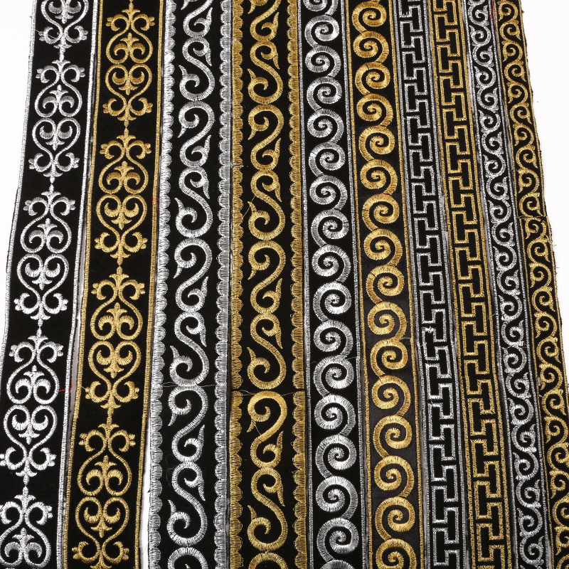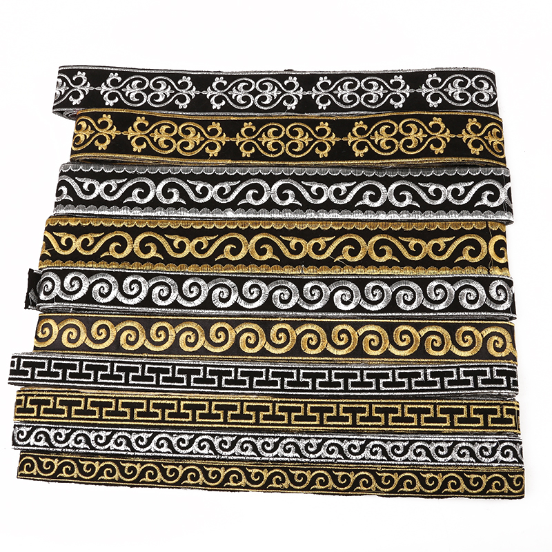 4 метра/Лот, Золотая/серебряная Этническая ВЫШИТАЯ тесьма, кружевная отделка, винтажная жаккардовая лента для рукоделия, изготовление одежды, аксессуары