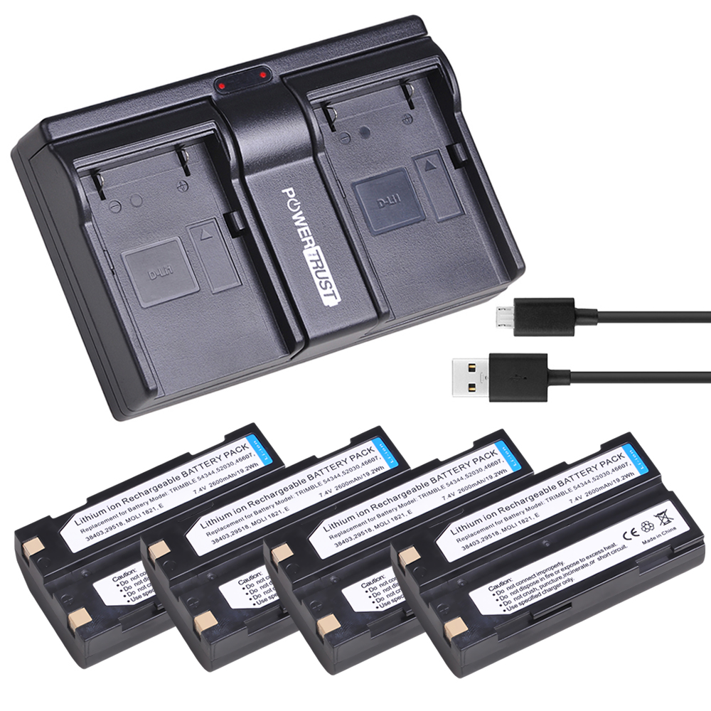 PowerTrust 4Pc 54344 Аккумулятор и быстрое зарядное устройство для Trimble 29518 46607 52030 38403 5700 5800 R6 R7 R8 GNSS TR-R8 GPS для Pentax Ei-D-Li1 EI-D-BC1 EI-2000 HP PhotoSmart C8873A 912 C912C912XI