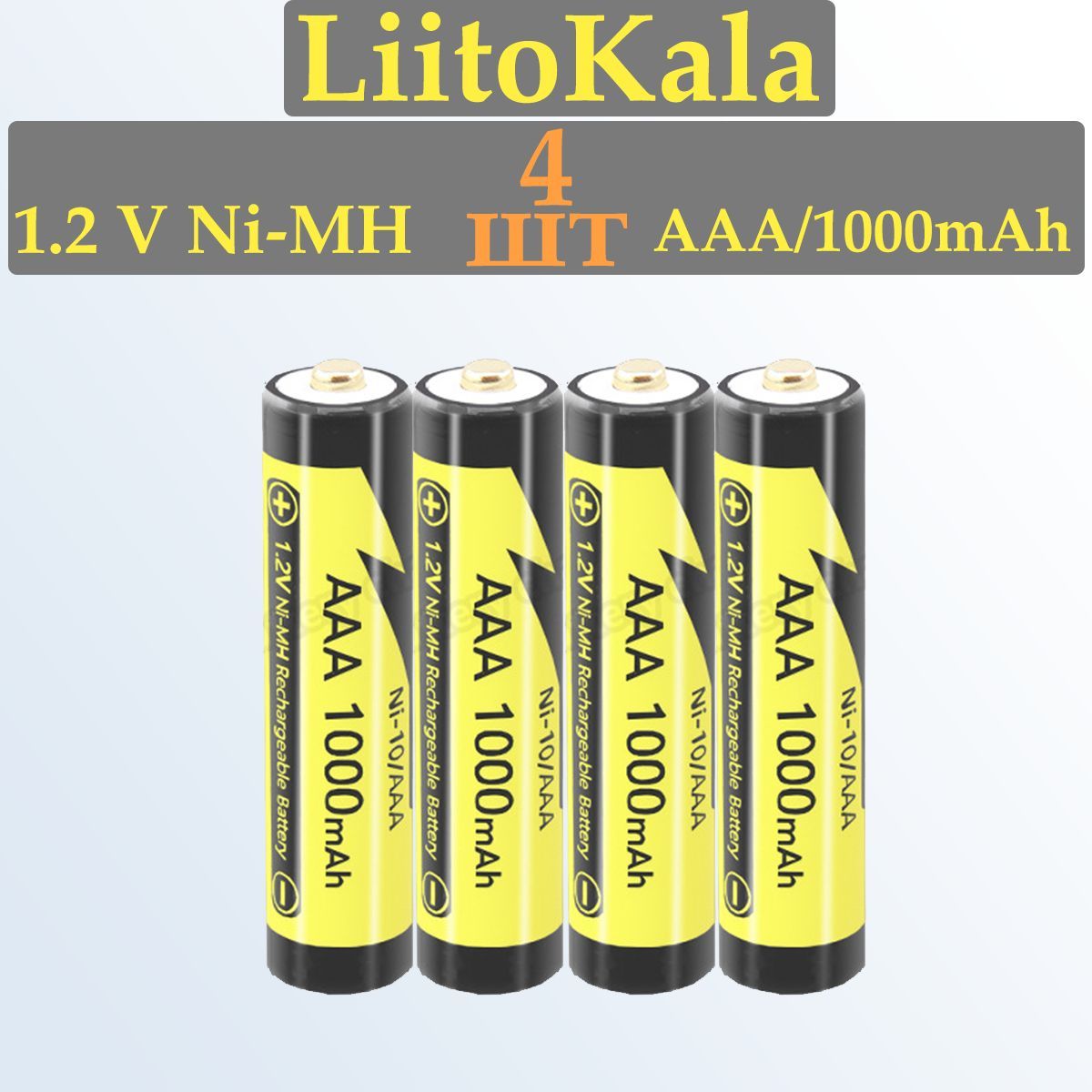 4 шт, Аккумуляторные батарейки LiitoKala AAA (HR03) 1000 mAh (мизинчиковые)