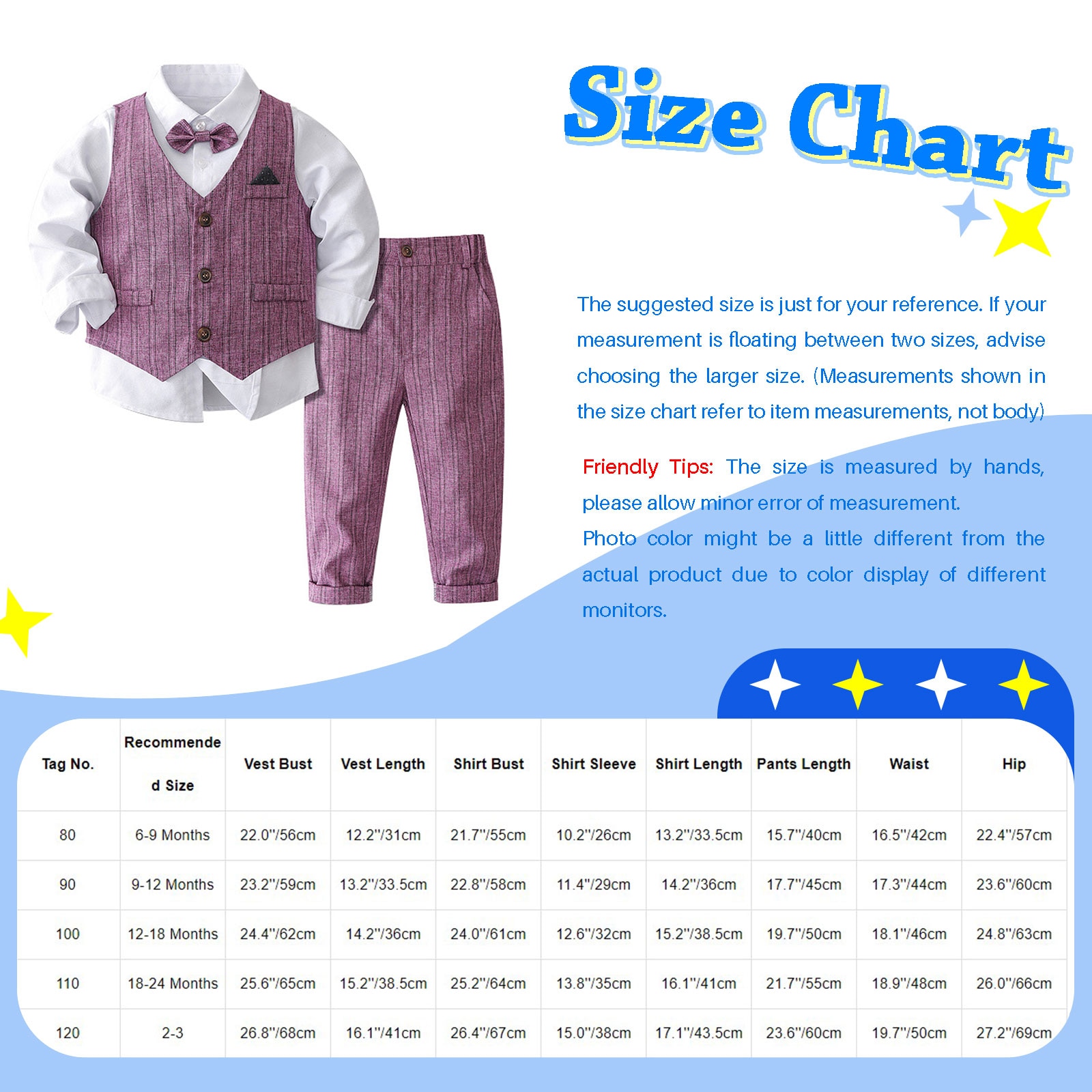 Тег Нет. Рекомендуемый Размер Жилет Бюст Жилет Длина спереди Рубашка Бюст Рукав Рубашки Длина рубашки Брюки Талия Брюки Хип Длина штанов