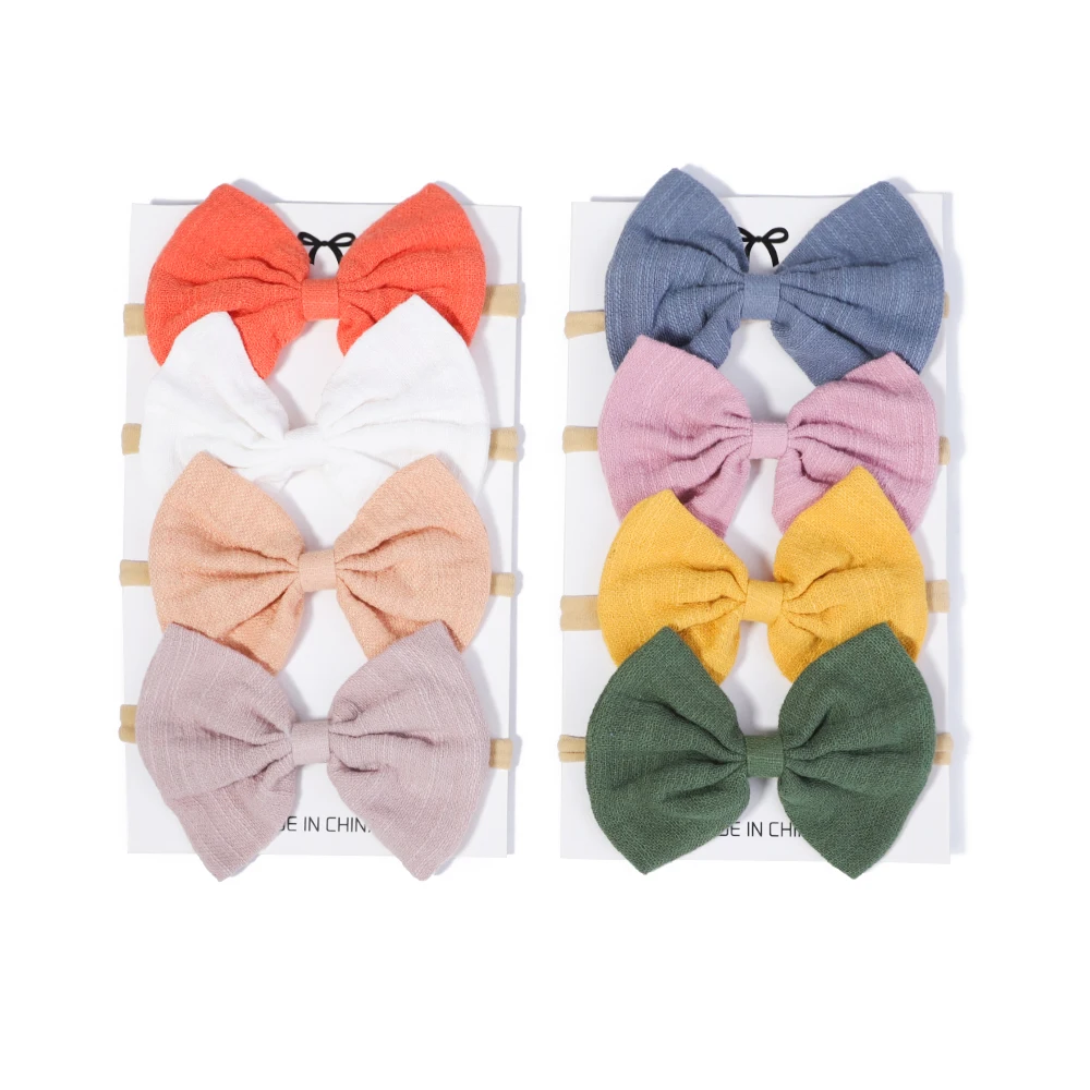 4 шт./Компл. Хлопок сплошной цвет банты повязка на голову для детей девочек нейлоновая эластичная повязка для волос ручной работы новорожденный головной убор аксессуары для волос