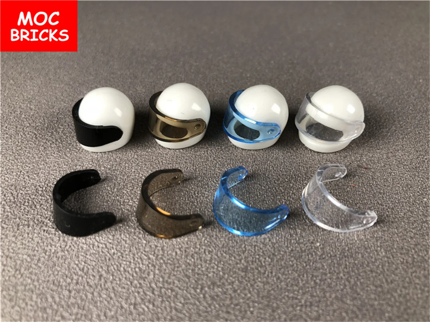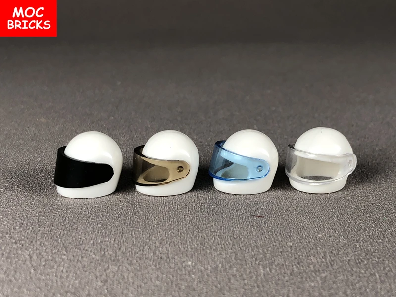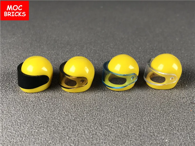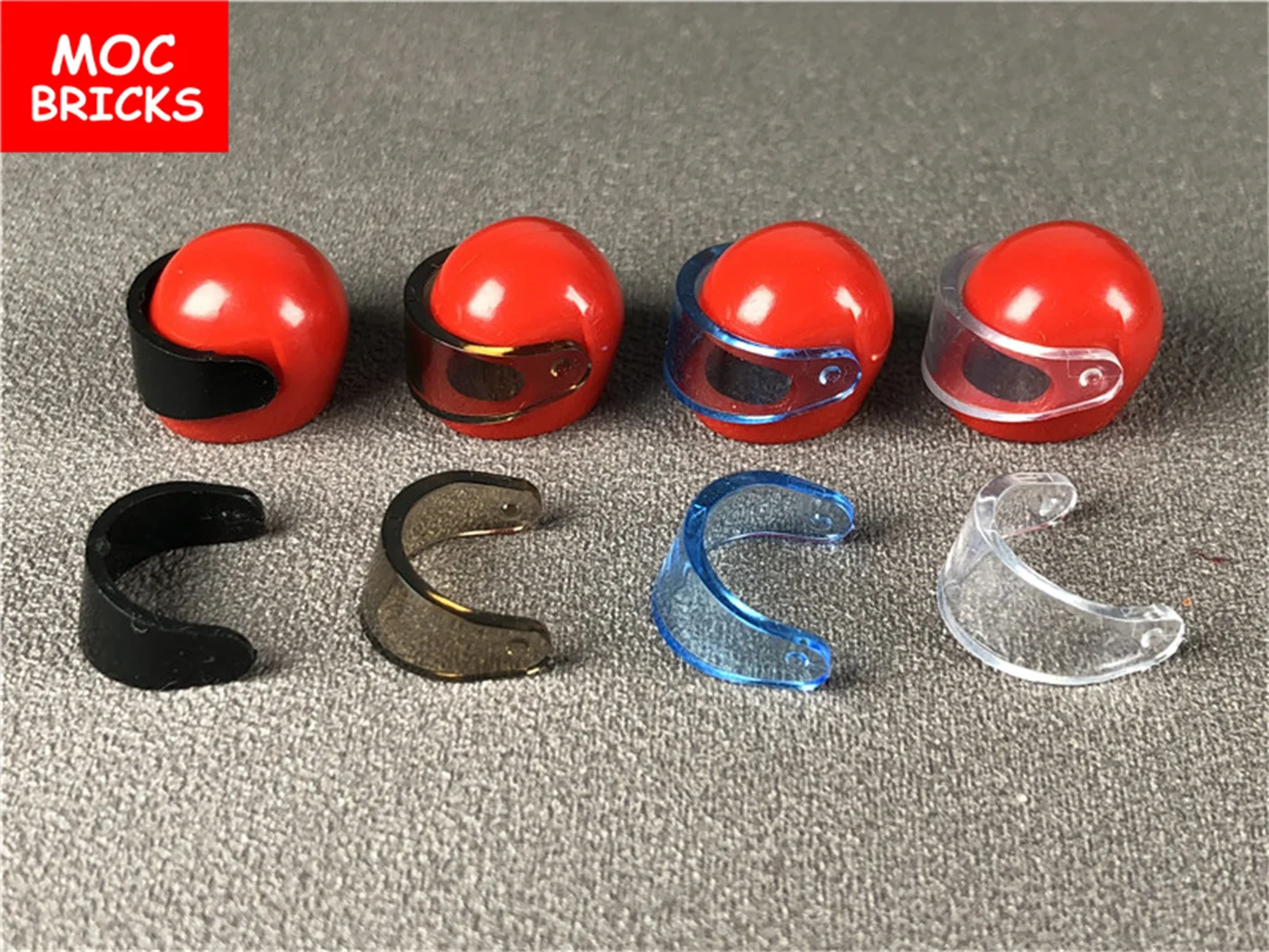 4 шт./лот, цветной мотоциклетный шлем MOC с козырьком, экшн-фигурка, аксессуары, строительные блоки, игрушки для детей, подарок