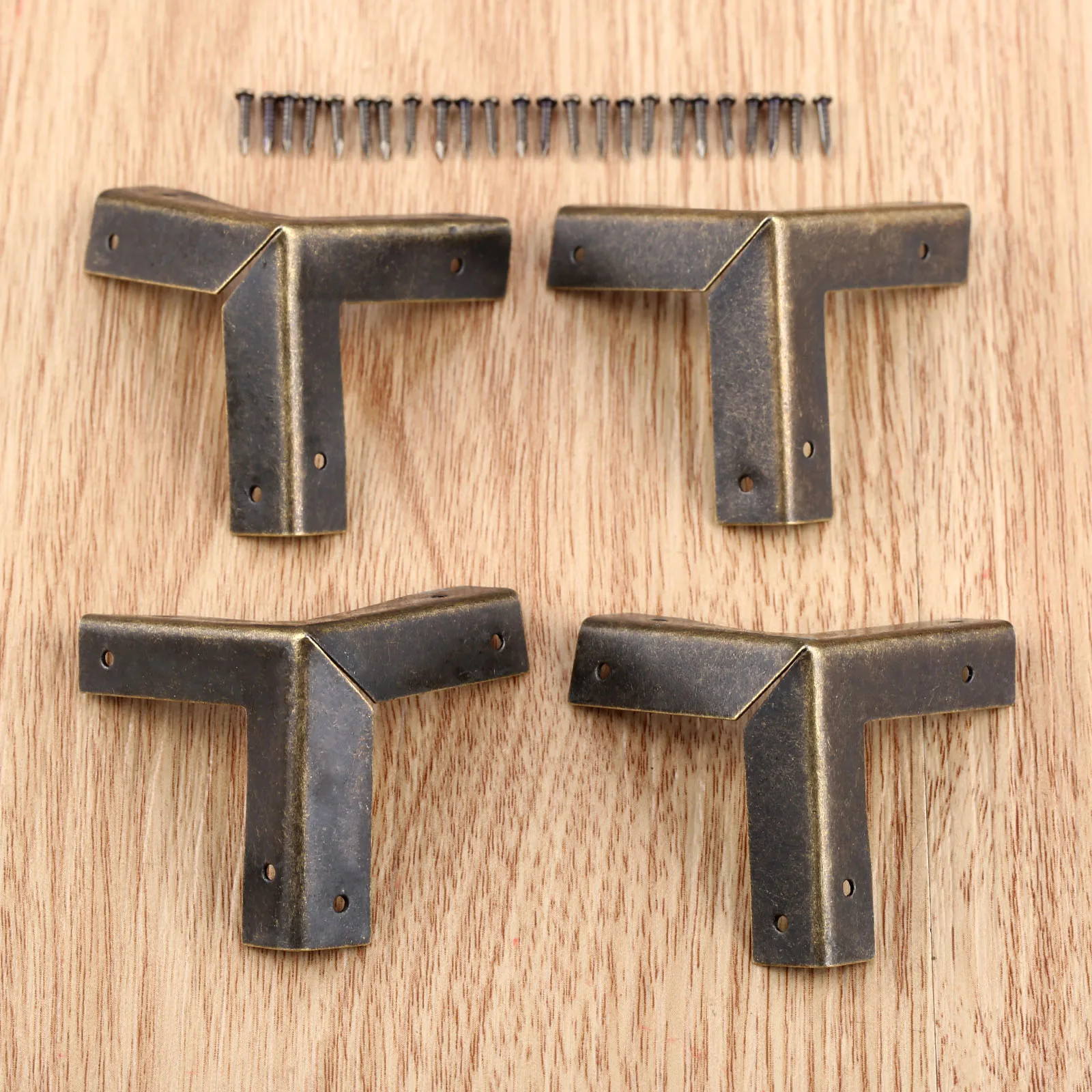 4 шт./лот Защитные уголки, Античная бронзовая шкатулка для ювелирных изделий, деревянный подарочный чехол для ножек стола, защита для ножек стола с гвоздями 33 мм, старомодный