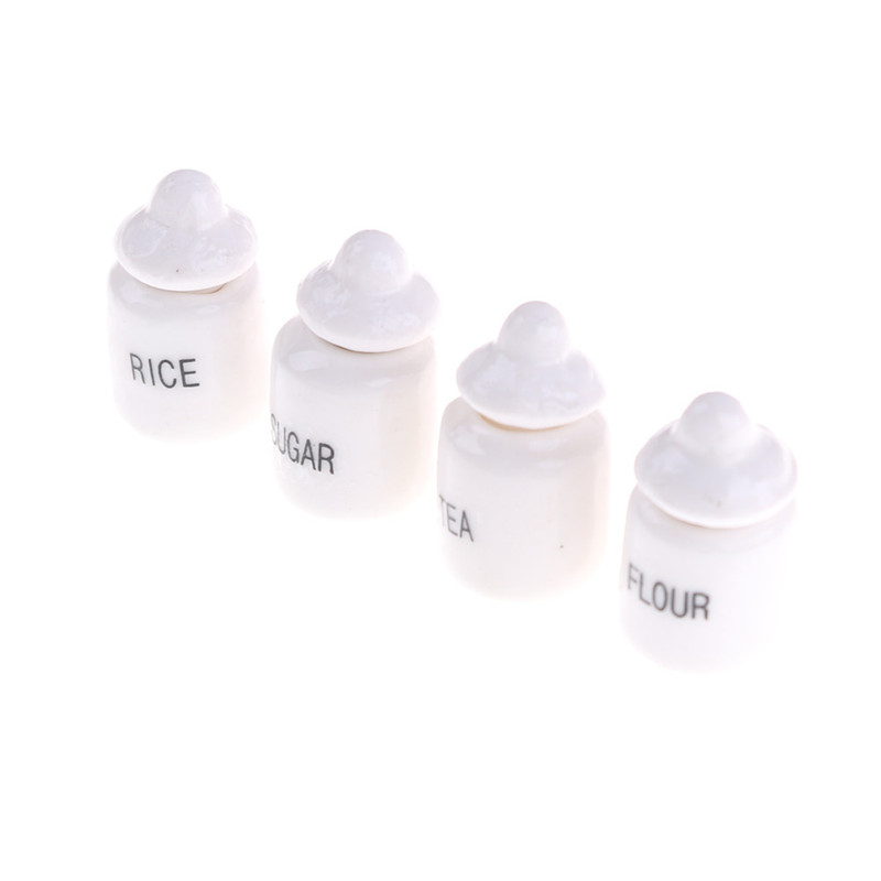 4 шт., миниатюрные белые керамические банки для хранения кукольного домика 1:12