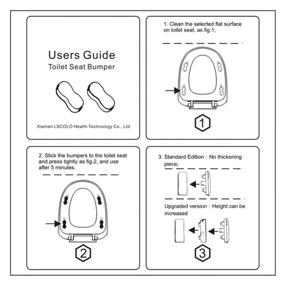 Простая установка: чистое кольцо для сиденья унитаза, сохраняет сухость, Оторвите клейкую ленту, прикрепите бампер к кольцу для сиденья унитаза, нажмите, чтобы обеспечить прочное сцепление