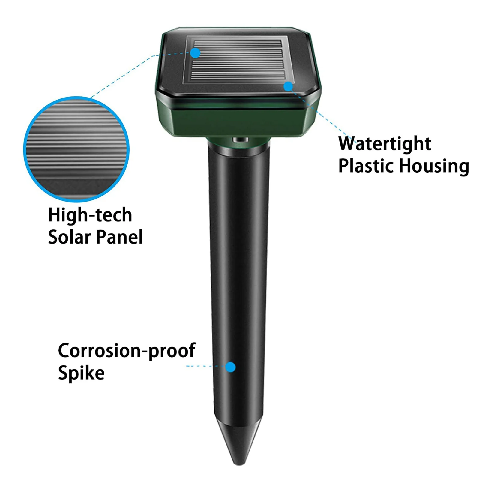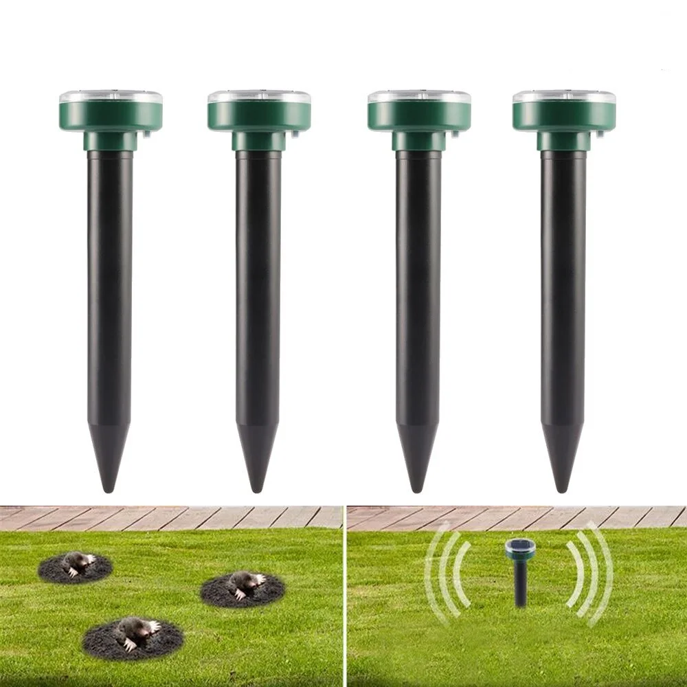 Отпугиватель вредителей на солнечных батареях 4 упаковки, Ультразвуковой отпугиватель Кротов, Суслик, Полевка, Змея, Отпугиватель грызунов, для борьбы с вредителями на открытом воздухе на газонах, садовых дворах
