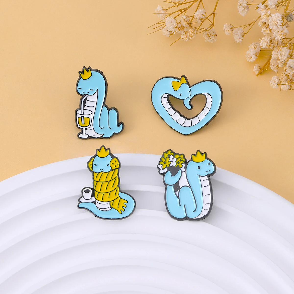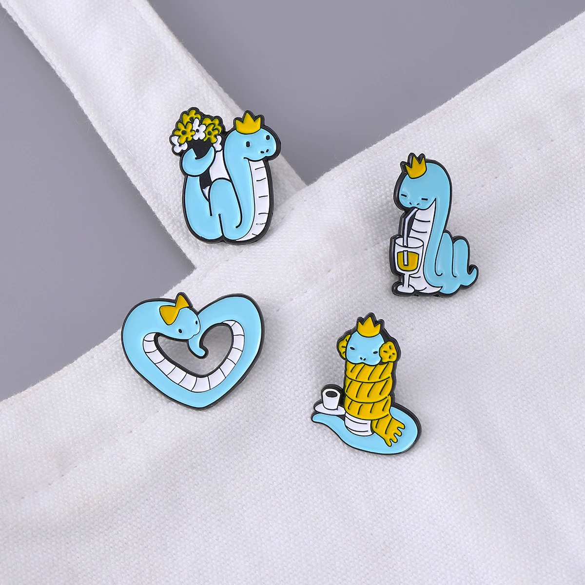 4 Styles cyan snake Brooches Yellow Scarf Snake Lapel pin Mr. Snake Orange Juice flower Love Snake Animal badges Jewelry