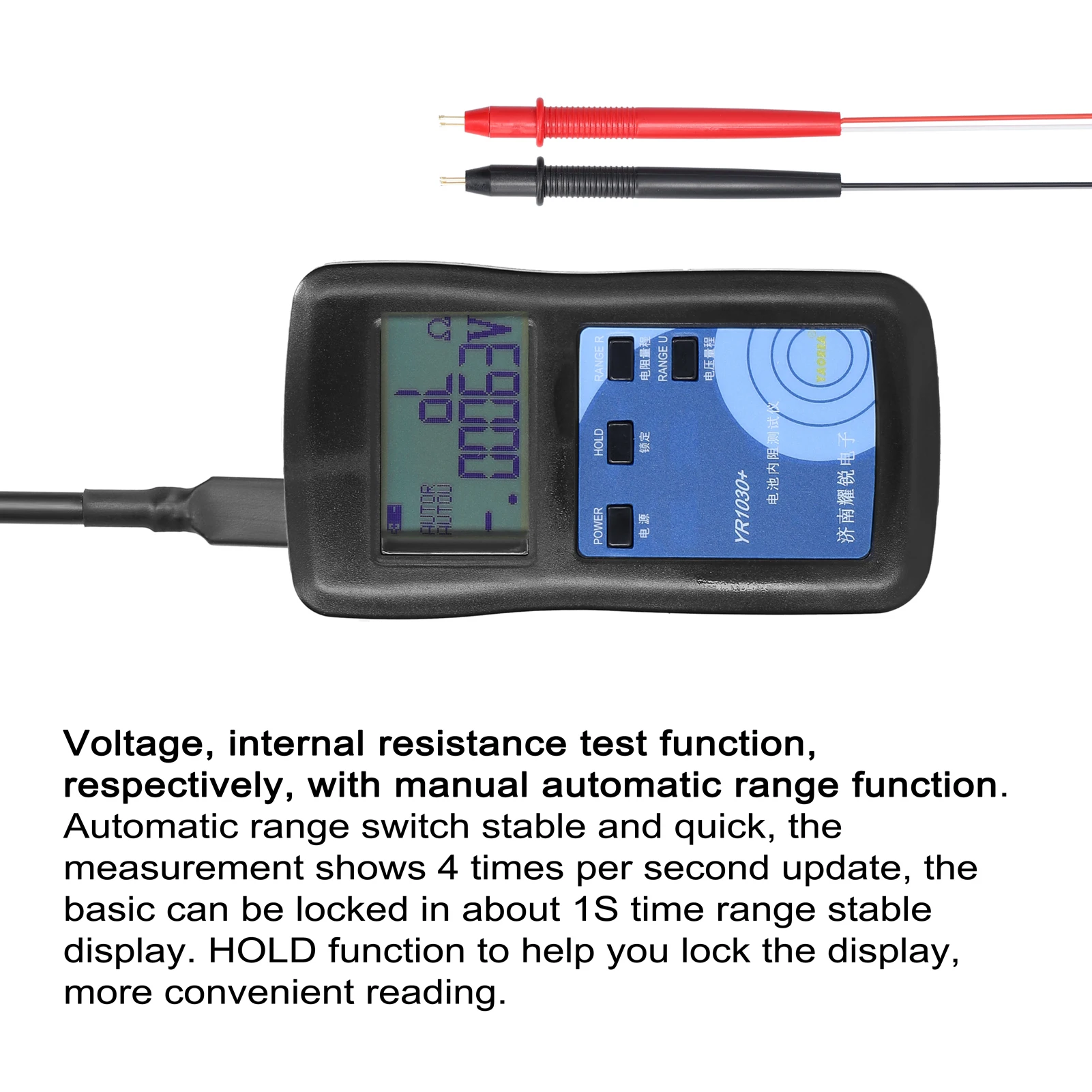 3. Voltage, internal resistance test function, respectively, with manual automatic range function. Automatic range switch stable and quick, the measurement shows 4 times per second update, the basic can be locked in about 1S time range stable display. HOLD function to help you lock the display, more convenient reading.