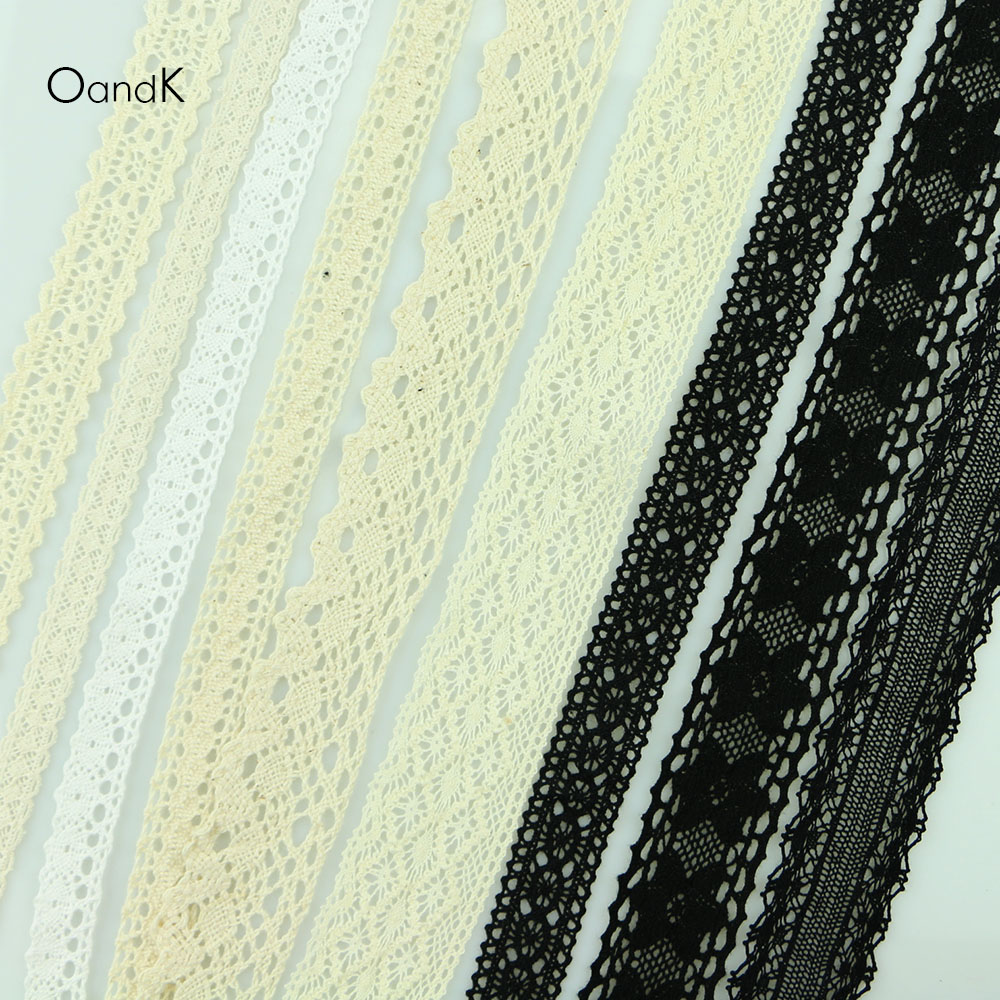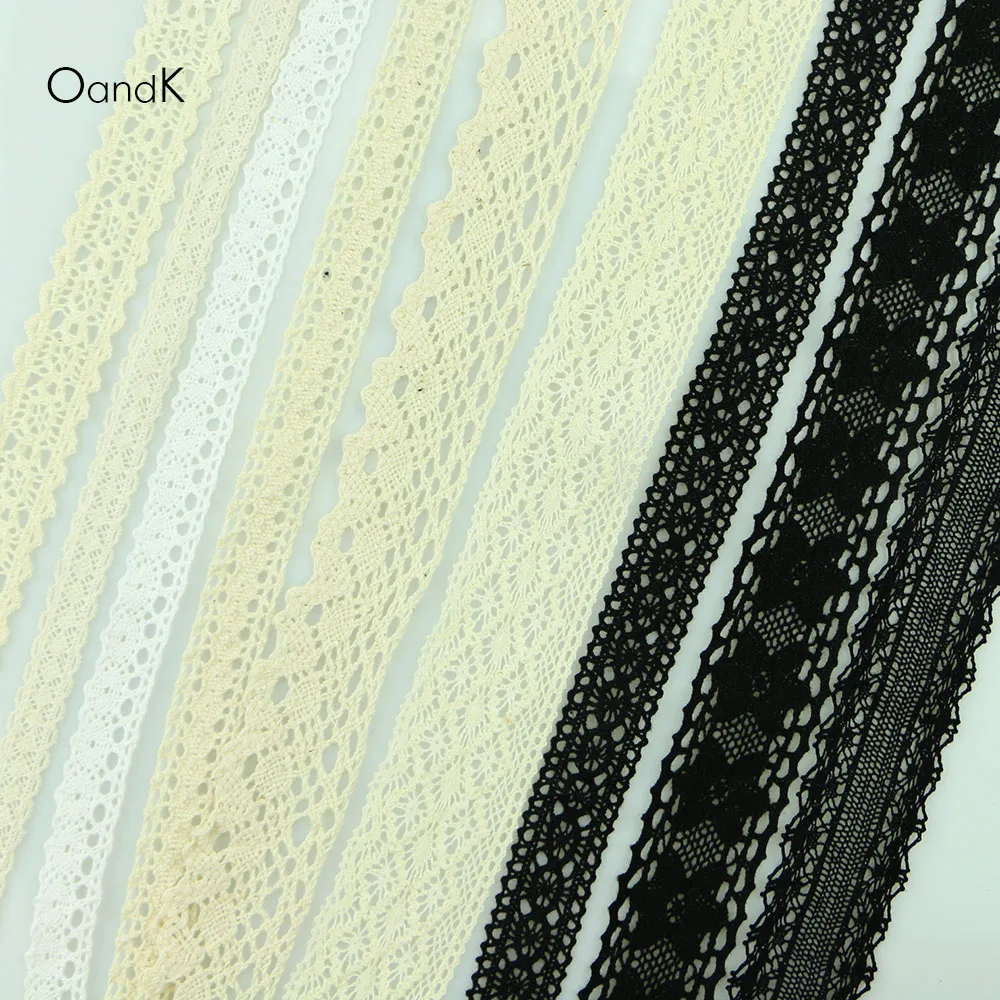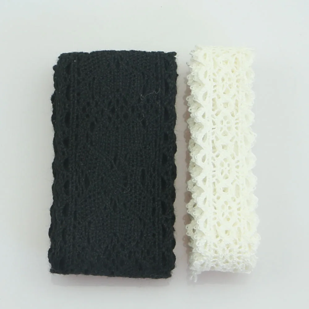 4 Ярда, ткань для шитья одежды, обрезанная хлопковая вязаная кружевная лента цвета слоновой кости, кремового и черного цветов, аксессуары для рукоделия, 11021