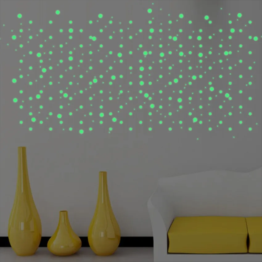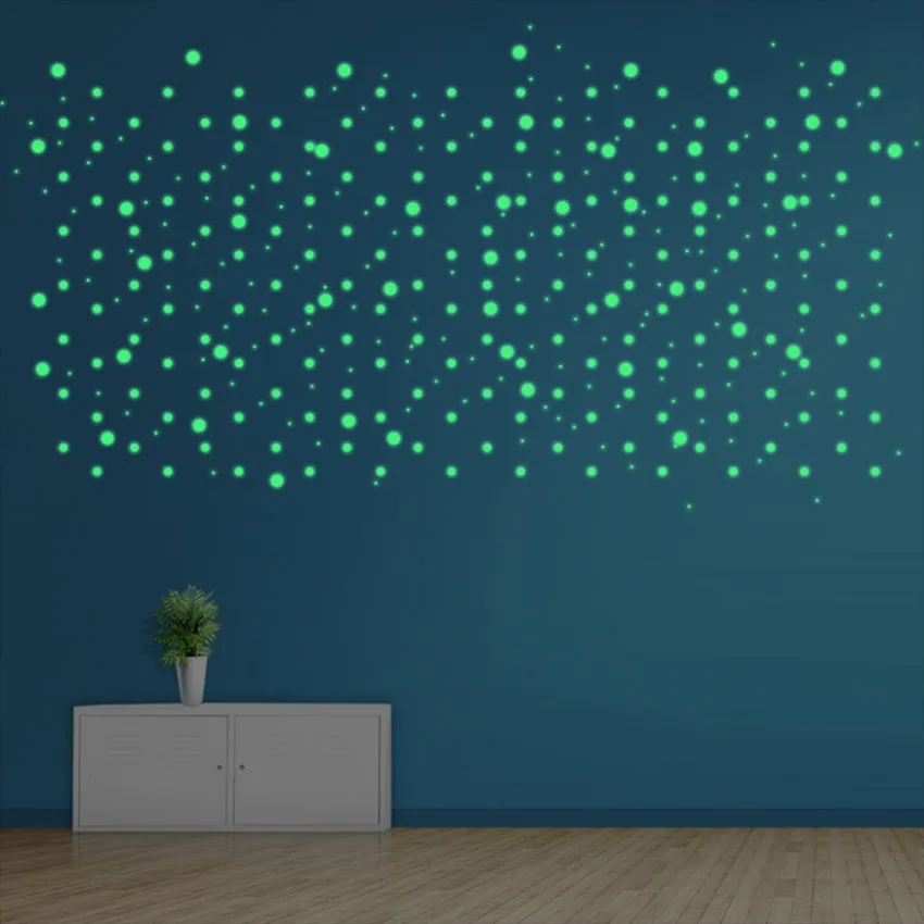 Круглые точечные флуоресцентные наклейки с 3 различными размерами, светится в темноте.