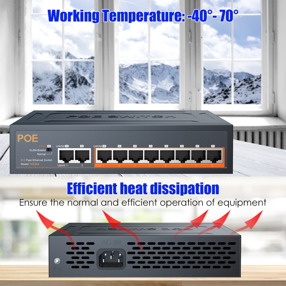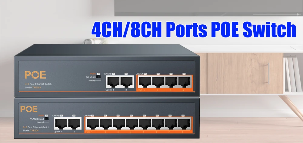 48 В 4/8/16 портов POE коммутатор Ethernet 10/100 Мбит/с IEEE 802.3 af/at для IP-камеры/системы видеонаблюдения/беспроводной точки доступа ft