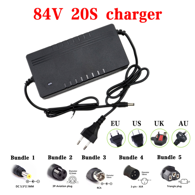 54,6 V 58,8 V 67,2 V 84V 2A 3A 5A Зарядное устройство для литиевой батареи AC 100-240V для 48V 52V 60V 72V 10Ah 15Ah 20Ah 25Ah 30Ah Электрический скутер электрический велосипед 13S 14S зарядное устройство для литий-ионных аккумуляторов серии 16S 20S DC 5,5*2,1 мм вилка для ЕС/США/Австралии/Великобритании