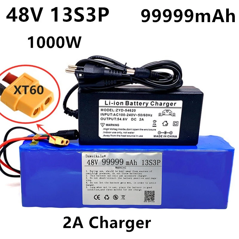 DaweiKala48V99.999Ah 1000W 13S3P XT60 48V Литий-ионный аккумулятор 99999 мАч для 54,6 В E-Bike Электрический велосипед Скутер с BMS