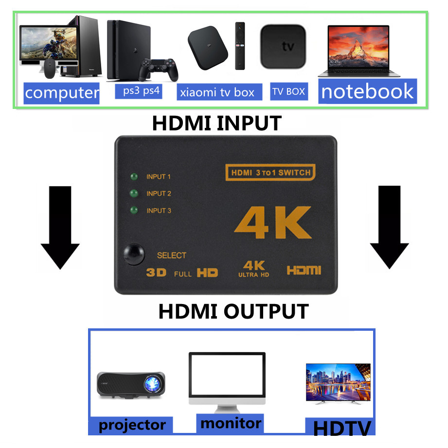 4K * 2K 3D Mini 3 порта HDMI-совместимый переключатель 1.4b 4K сплиттер 1080P 3 в 1 порт концентратор для DVD HDTV Xbox PS3 PS4
