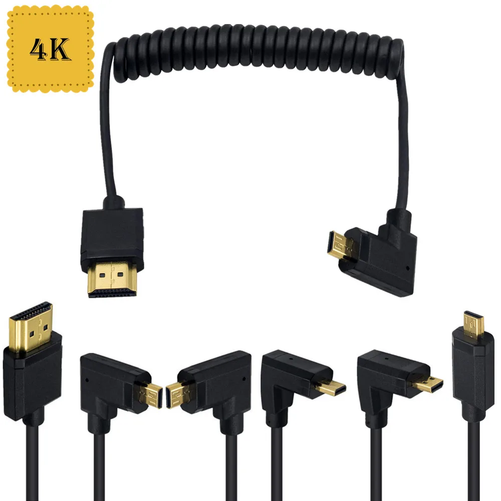 4K * 2K @ 60 Гц OD 3,2 мм Micro HDMI-совместимый с спиральным кабелем HDMI до 90 градусов Micro HDMI Удлинительный кабель HD