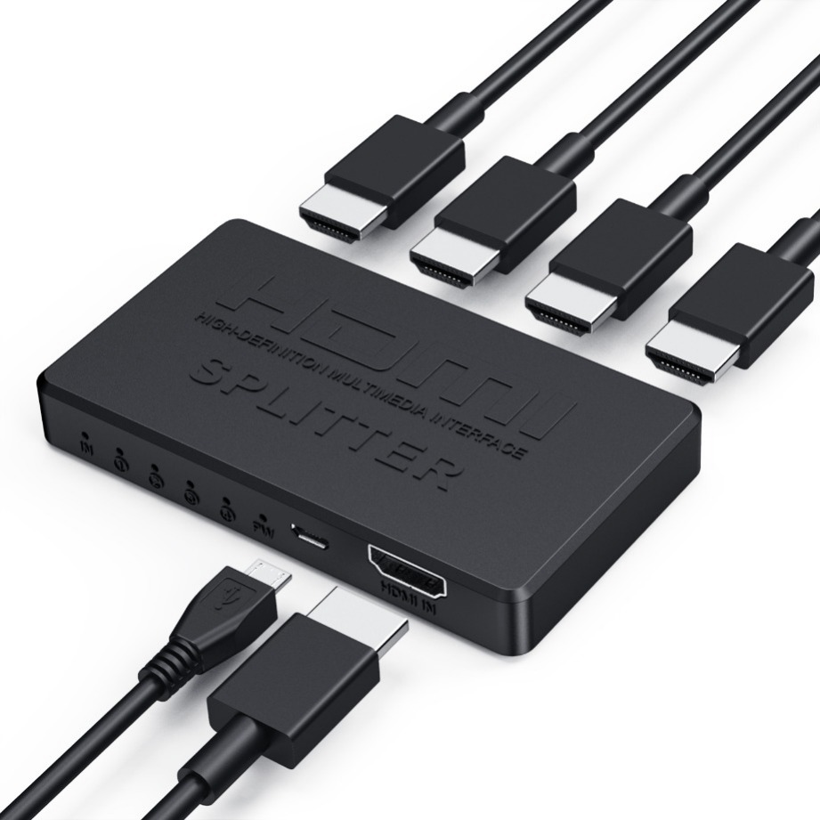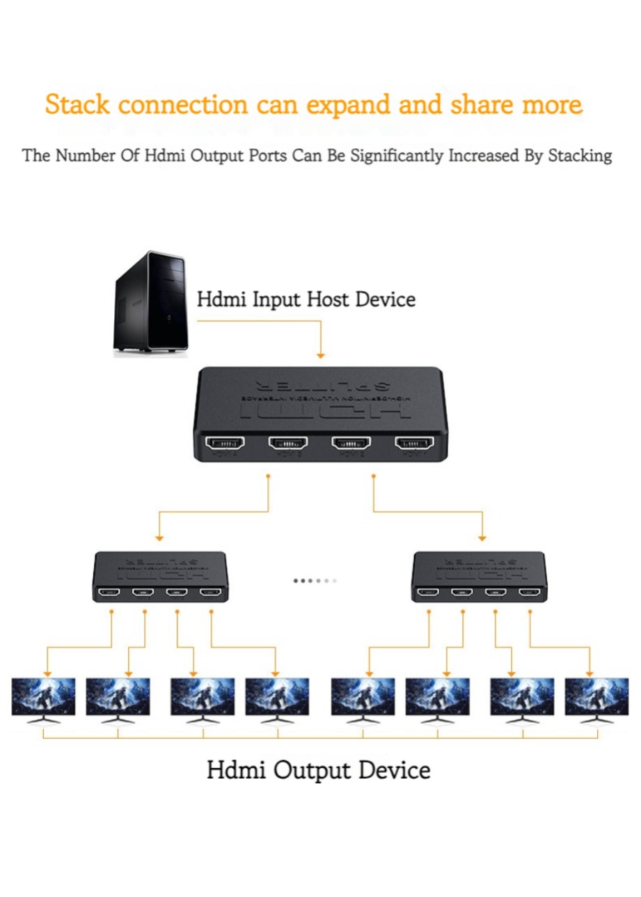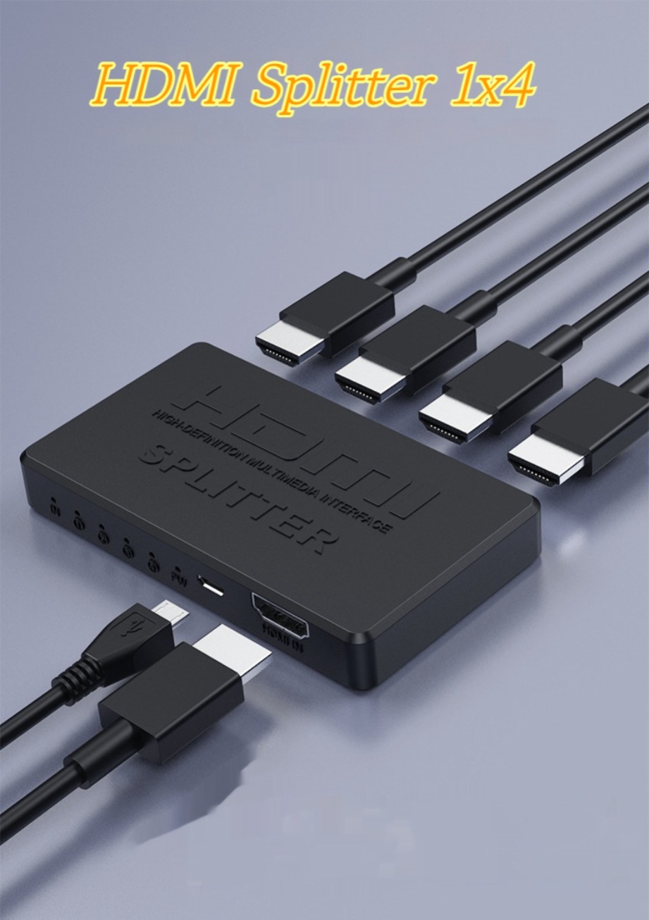 ● HDMI Splitter 1 на 4 выхода, так что порт HDMI для выделения четырех портов HDMI аудио и видео дистрибьютора высокой четкости.