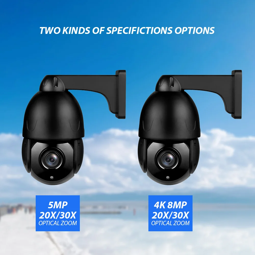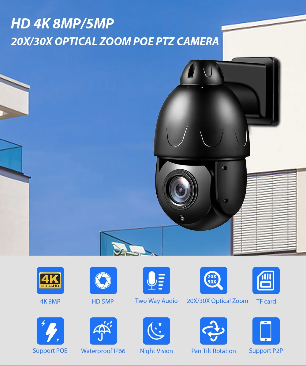 HD 4K 8MP 30X ZOOM Открытый купол 5MP POE PTZ Двусторонний аудио слот для карт TF H.265 IP-камера видеонаблюдения