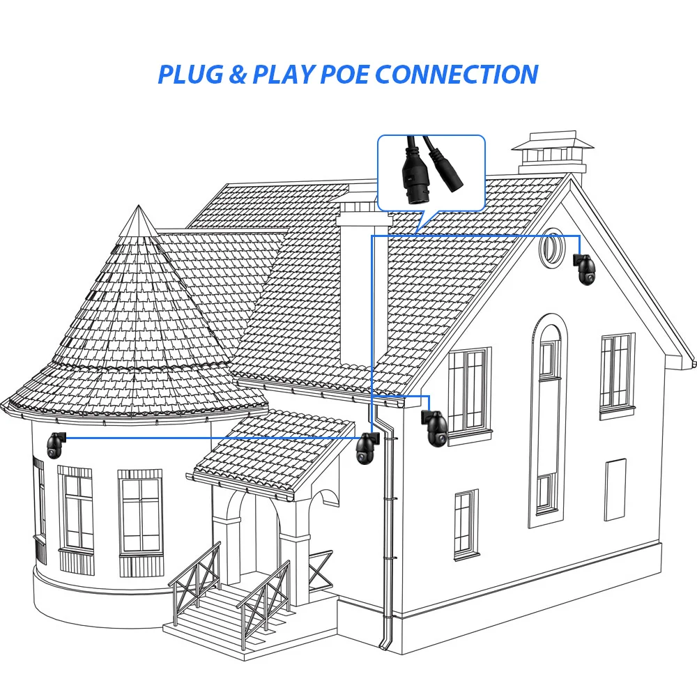 (Вы можете подключить эту камеру POE к коммутатору o-n-V-I-F POE NVR/PoE через сетевой провод, не требуется дополнительный источник питания, проста в установке и эксплуатации)Поддержка дистанционного управления P2P, просмотра в любом месте и в любое время