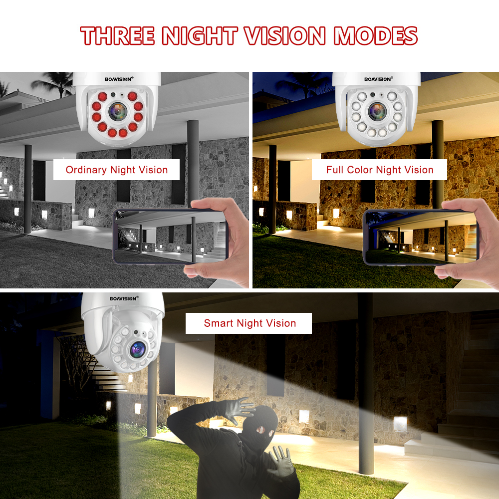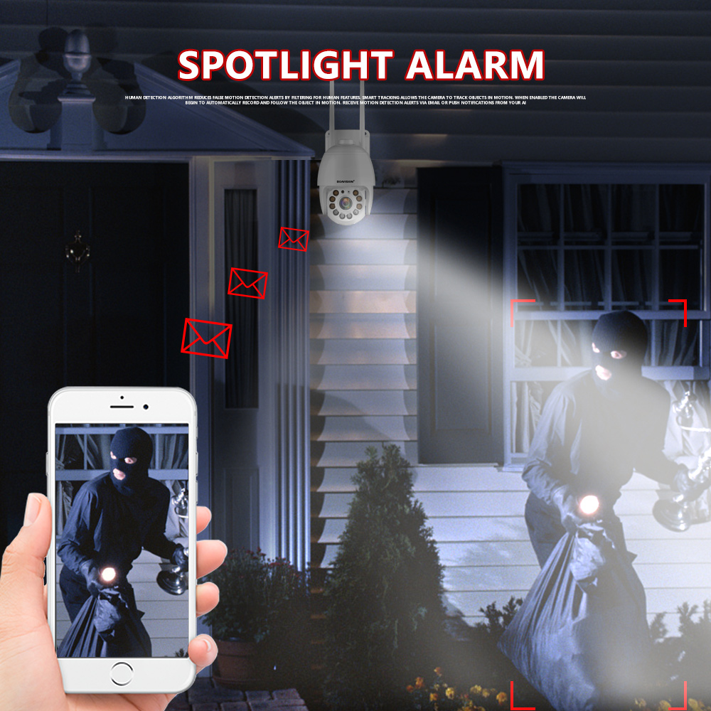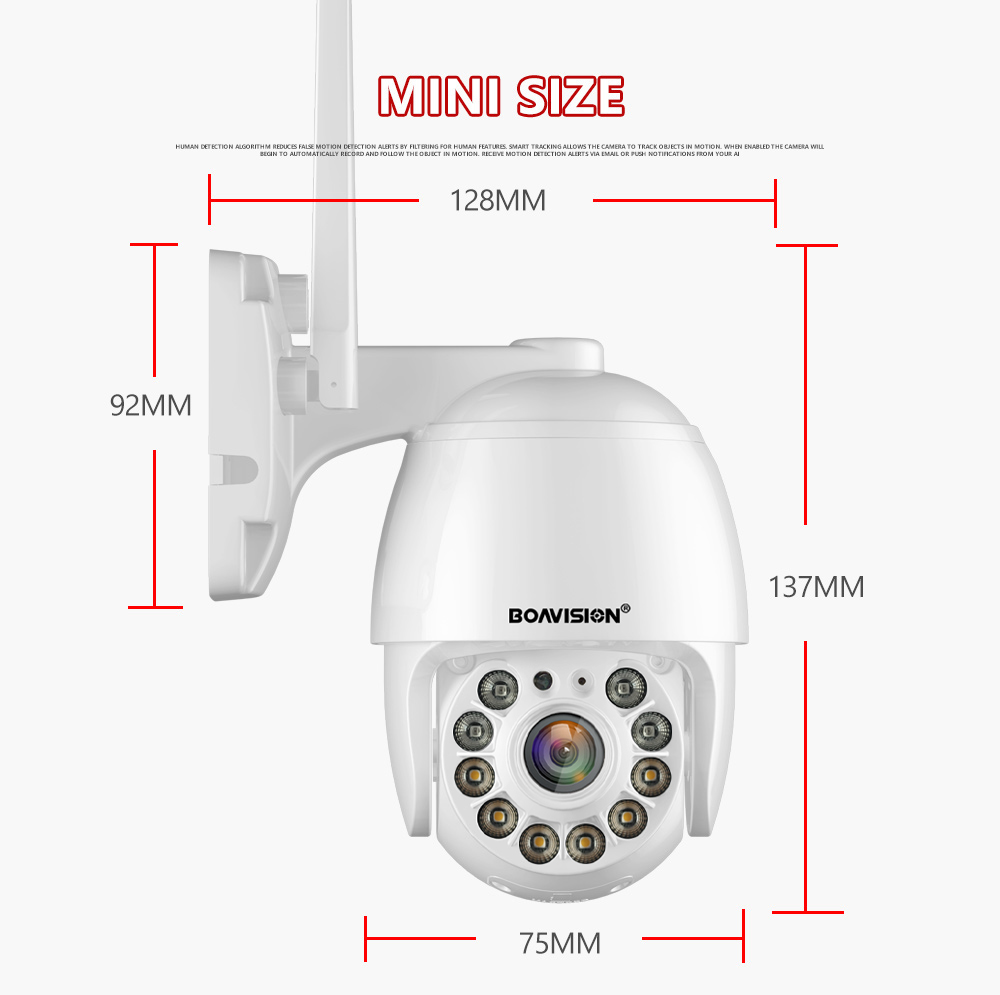 С улучшением функции обнаружения человека камера разумно обнаружит человека и уменьшит 95% ложных тревог, вызванных дождем, ветром, растениями и т. Д., Слова отправьте изображения в указанный почтовый ящик, изображения загрузки тревоги и видео