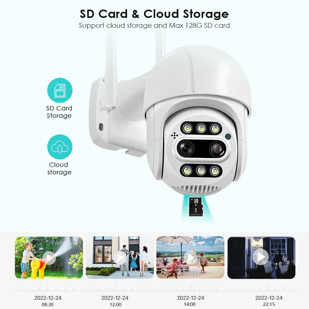 Первый месяц облачного хранения и макс. 128G SD карты записи, безопасность данных является более стабильной.