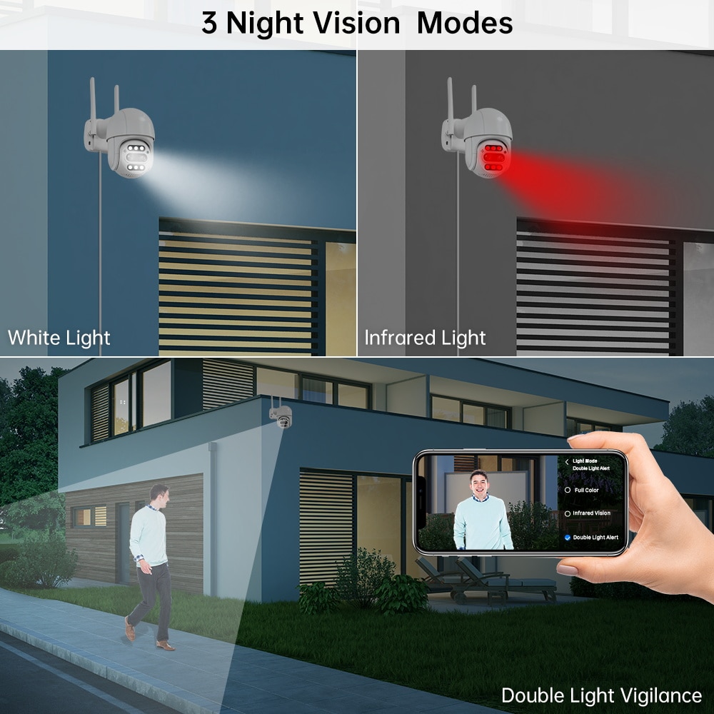 Smart Dual Light Modes full-color mode / infrared mode / double-light alert mode