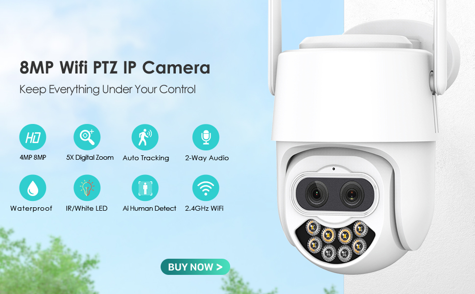 4K 8MP UHD AI PTZ 8X Zoom Wifi IP камера