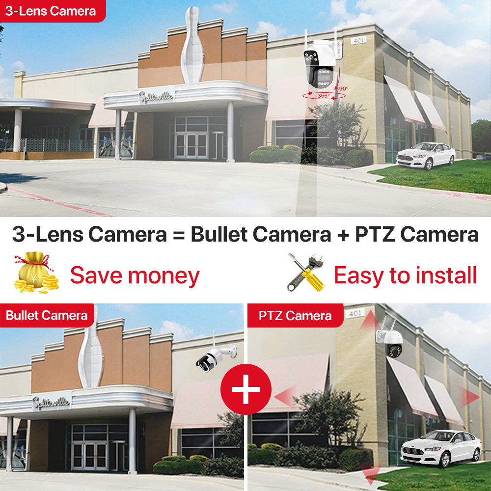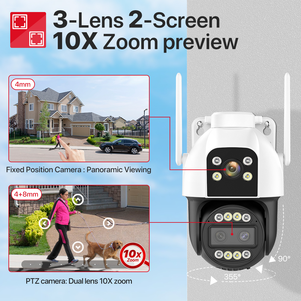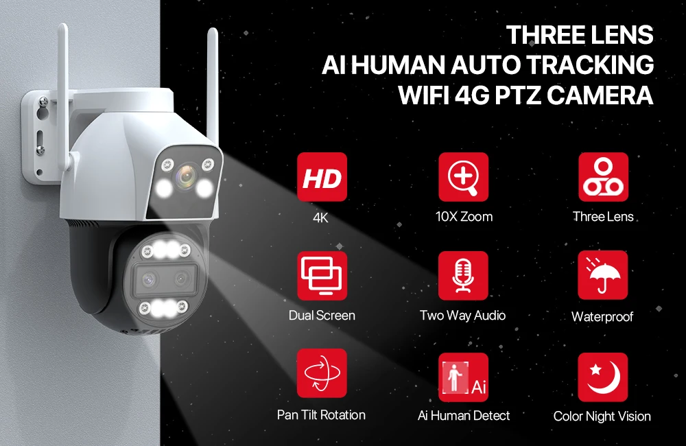 4K HD 4G Wifi IP камера 10X зум с тремя объективами
