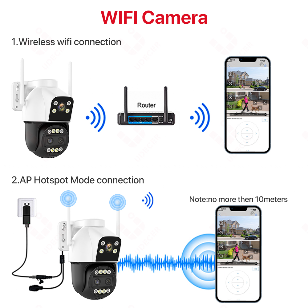 -Вариант камеры WIFI: работает только с маршрутизатором WIFI в зоне покрытия сети 2,4G