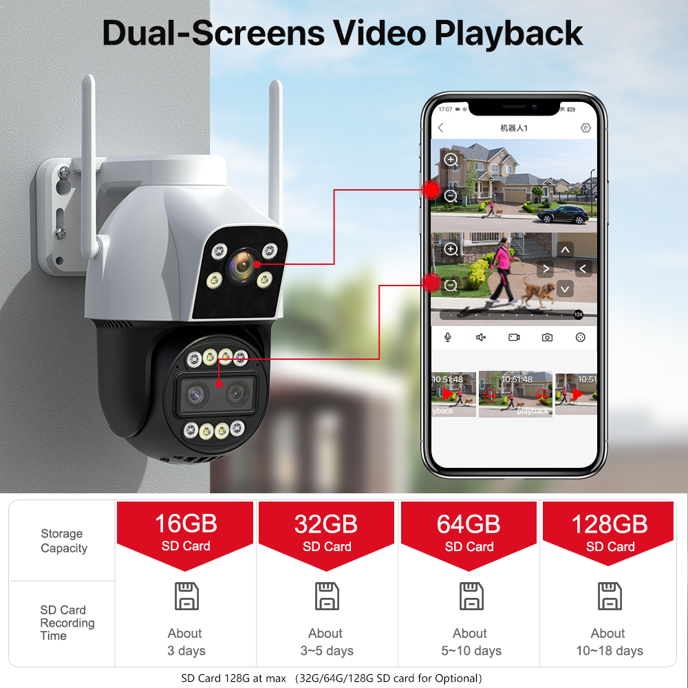 -Вставьте TF-карту до 128 ГБ (TF можно выбрать по мере необходимости), что поможет вам сохранить видео, которое вы не хотите удалять
