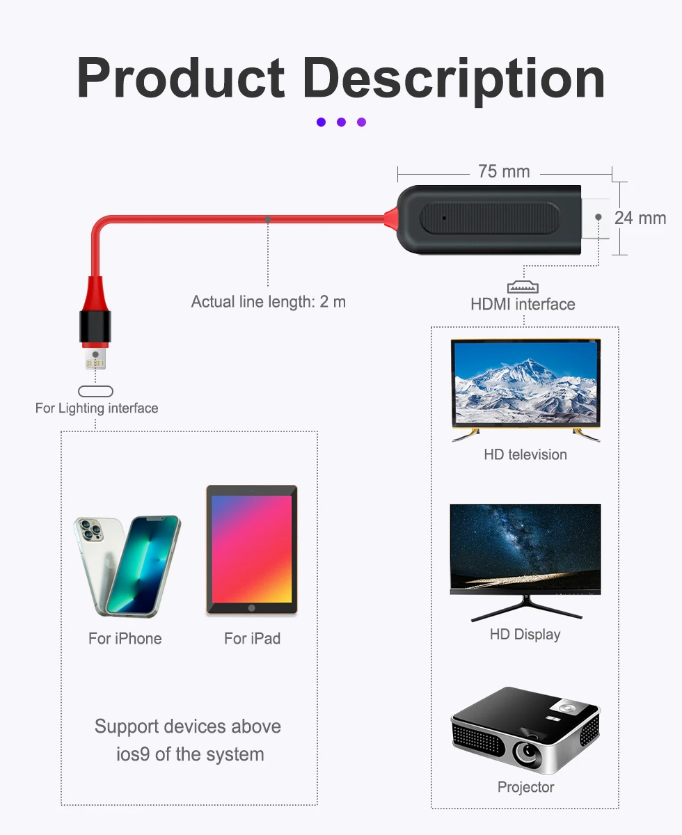 4K HD видеокабель Lightning/HDMI-совместимый HDTV цифровой 1080P конвертер для iPhone 14 13 12 11 Pro Max AppleTV iPad Macbook