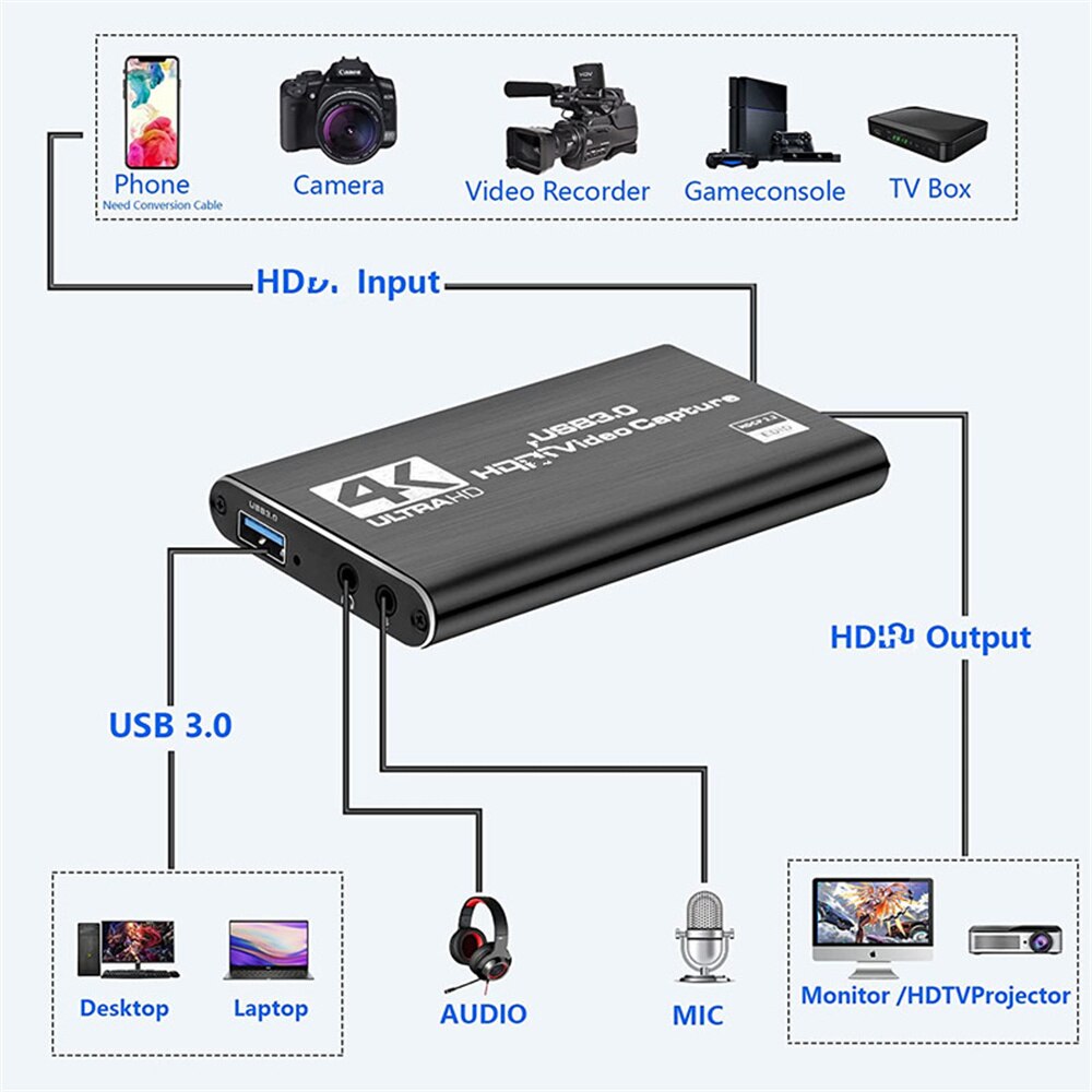 4K USB 3,0 HDMI-совместимый 1080P 60fps HD видеорегистратор захват для захвата груди игровой карты