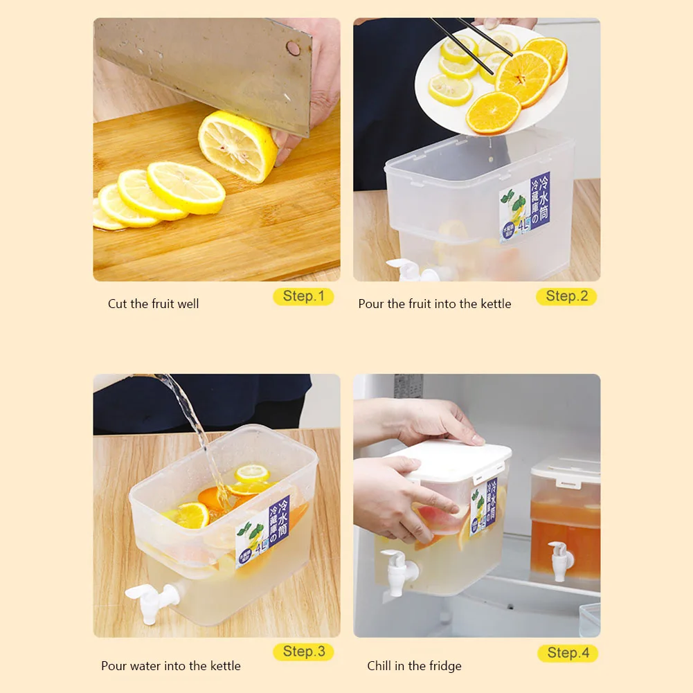 4L большой холодильник с холодным чайником с краном бутылка для лимонада посуда чайник горшок диспенсер для напитков домашние прохладные фруктовые напитки кувшин для воды ведро