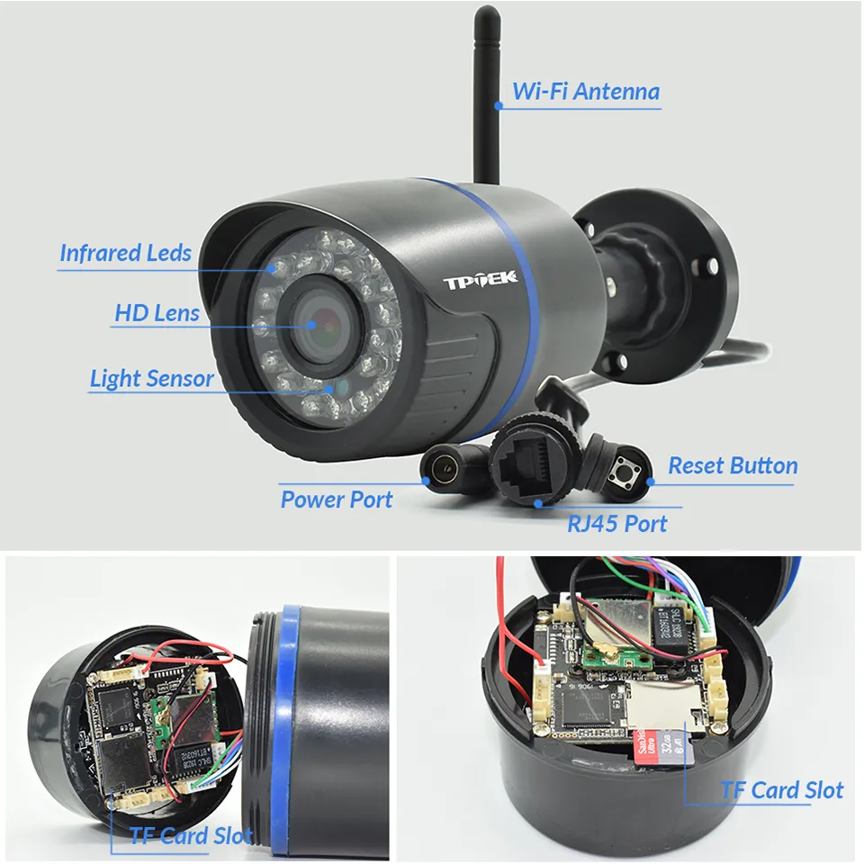 Слот для карт TF позволяет вставить карту TF на 64 ГБ, что позволяет сохранять изображения и видео для последующего просмотра. Между тем, большая память позволяет записывать все, что вы хотите, не упуская ни минуты. (TF-карта не входит в комплект)
