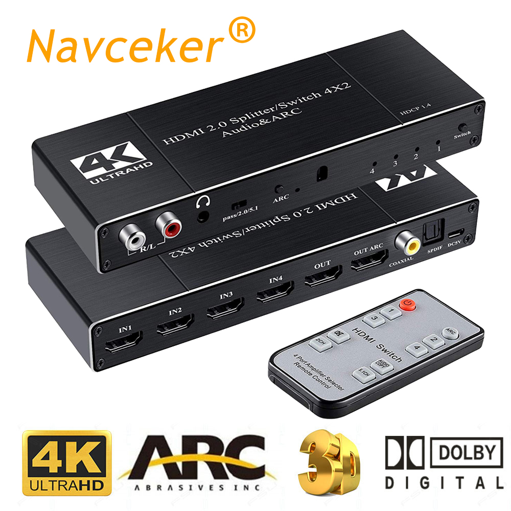 4x2 4K HDMI переключатель аудио экстрактор ARC и оптический Toslink 4 в 2 выхода переключатель HDMI 4K 60 Гц HDMI переключатель пульт дистанционного управления для Apple TV PS4