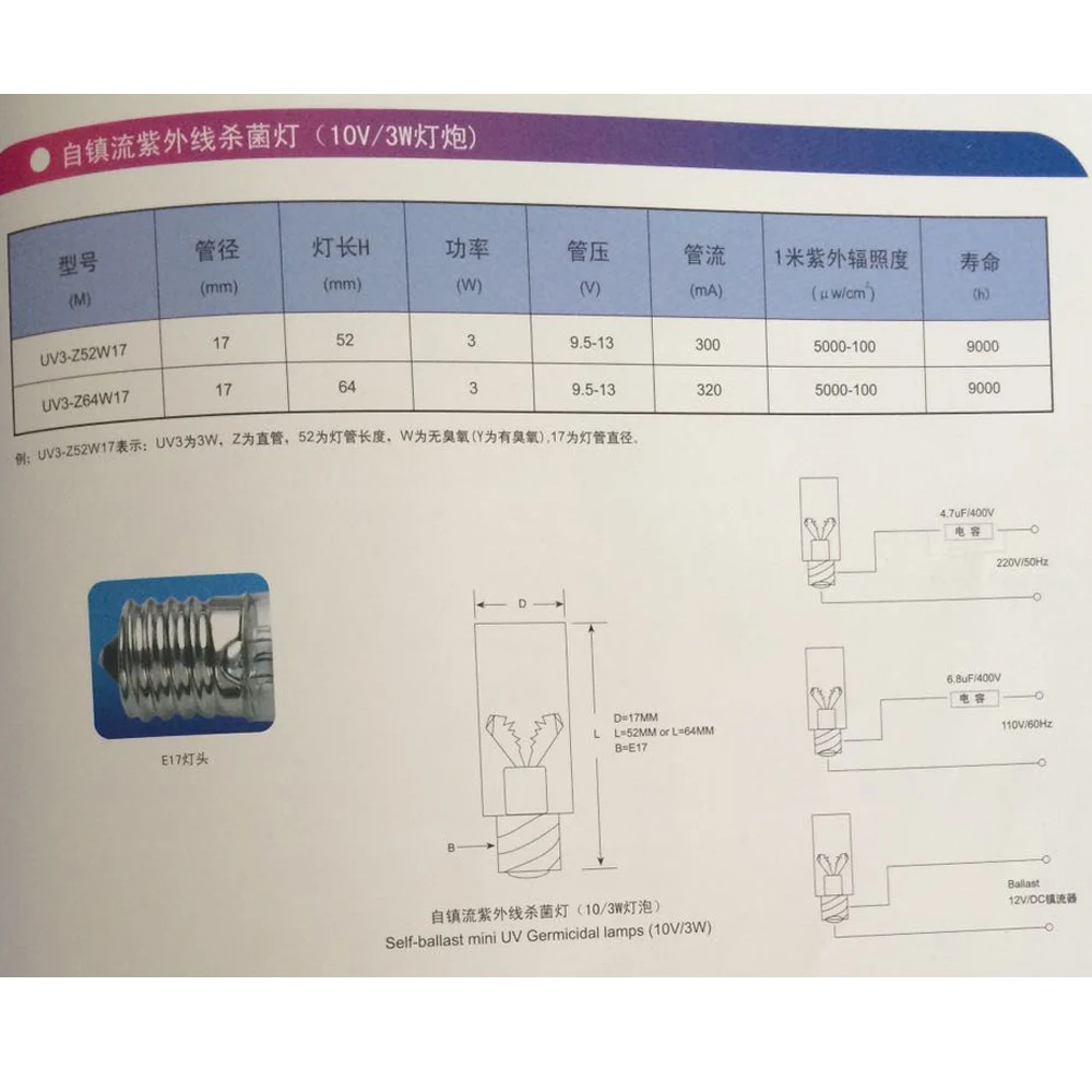 E17 УФ-лампа для дезинфекции озона Лампа для убийства клещей (с моделью озона) 3 Вт кварцевый камень Стекло Светодиодная лампа 110 В 220 В