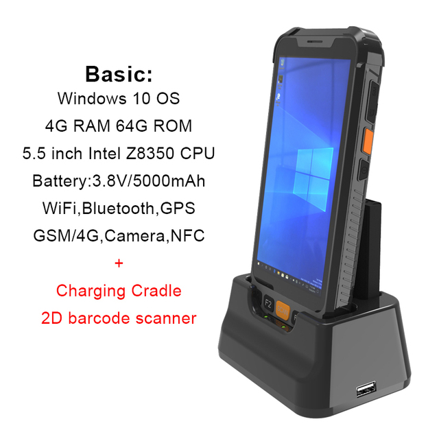 5,5 дюймовый прочный КПК с Windows, устройство для считывания ярлыков, 4G, LTE, UHF, Радиочастотная Идентификация, сканер 2D, зарядная док-станция, портативный терминал SH5