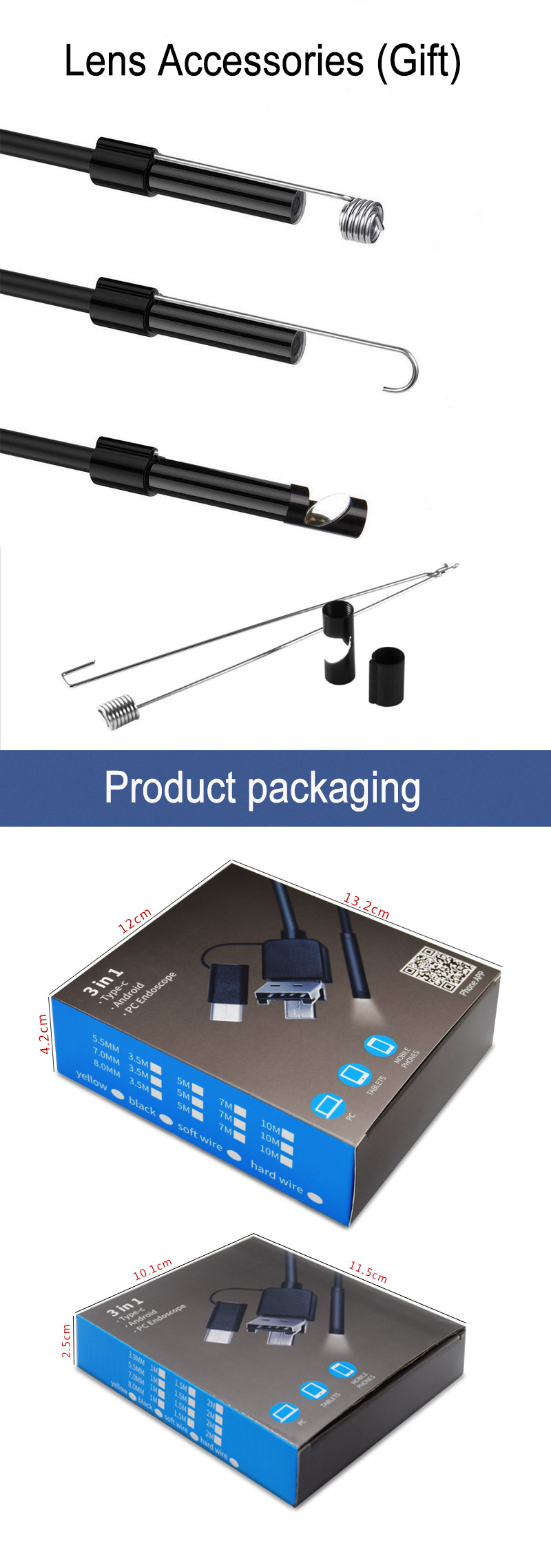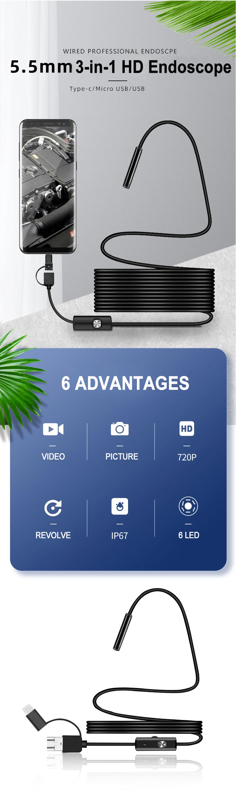 5,5 мм 3 в 1 HD эндоскоп