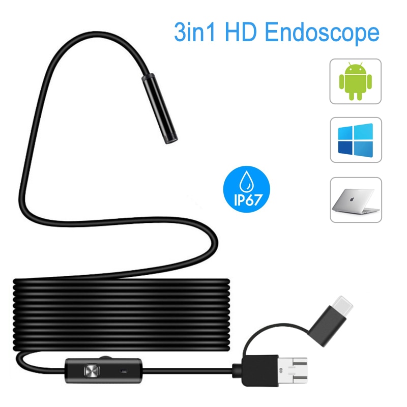 5,5 мм 3 в 1 HD Эндоскопическая Камера IP67 водонепроницаемая 6 светодиодных лампочек для автомобилей промышленный смартфон мини-камера USB Type C Micro-USB