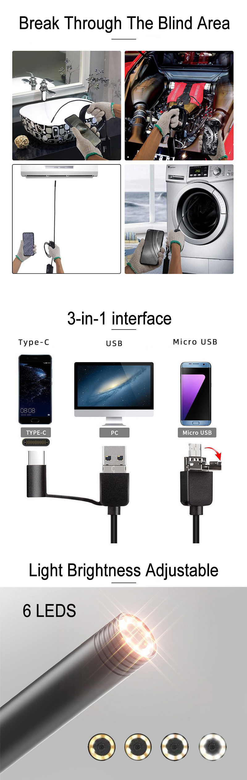 Номер модели 3in1 HD Endoscope
