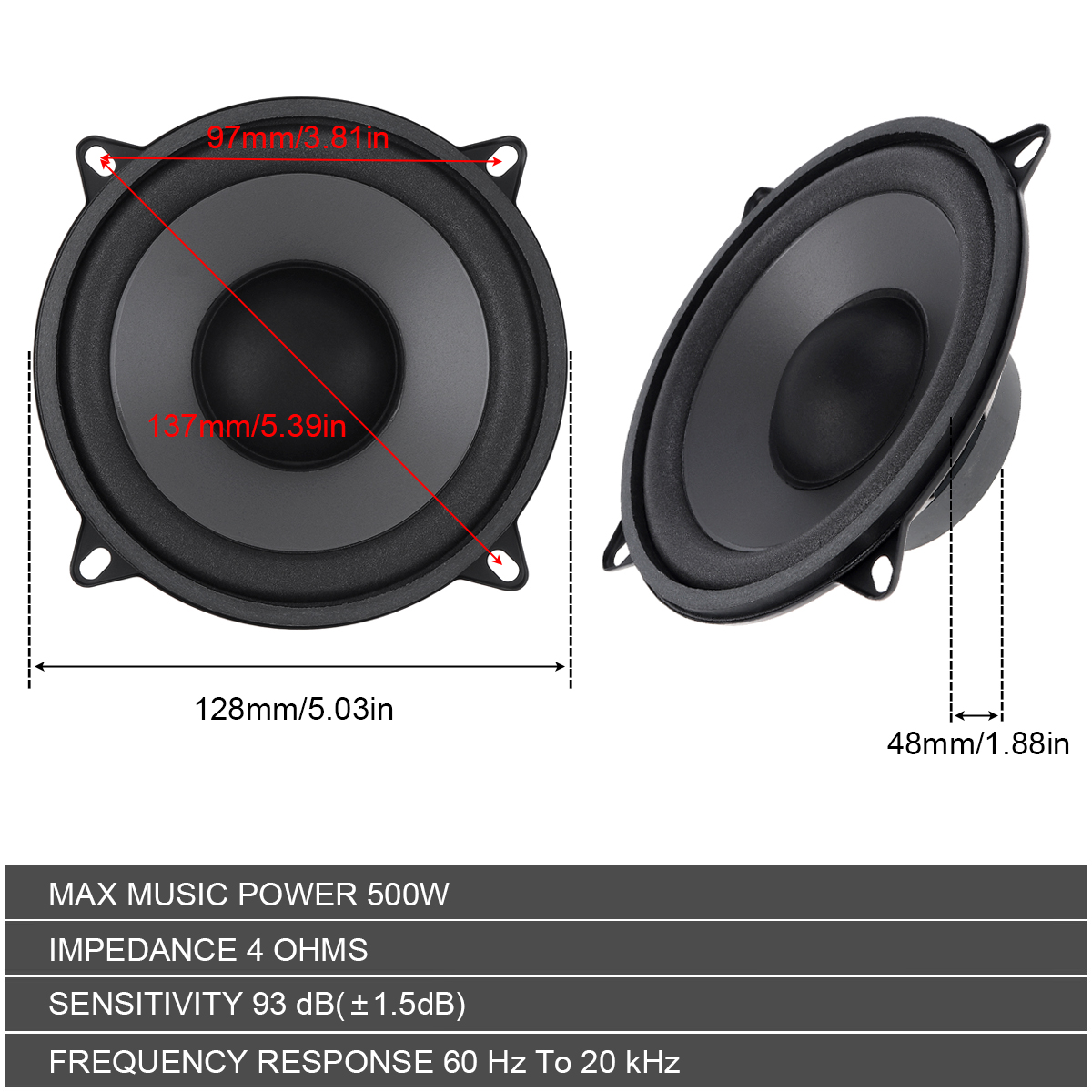 5-дюймовые автомобильные динамики 500 Вт, 2-полосные автомобильные дверные аудио, музыкальные стерео, полнодиапазонные автомобильные коаксиальные Hi-Fi Динамики, сабвуфер