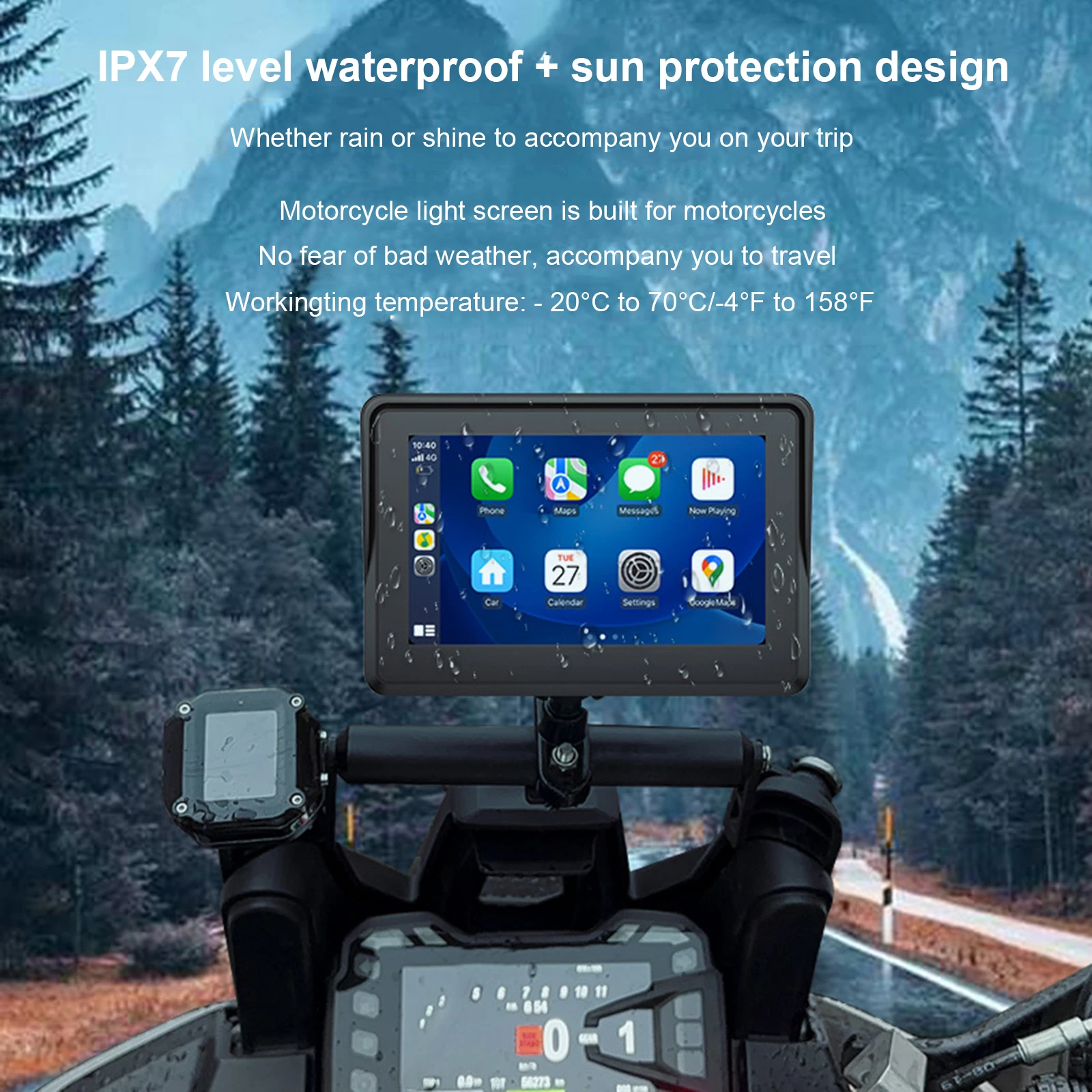 5-дюймовый сенсорный мотоциклетный специальный навигатор, открытый IPX7 водонепроницаемый внешний портативный мотоциклетный навигатор, беспроводной CarPlay и беспроводной Android Auto.