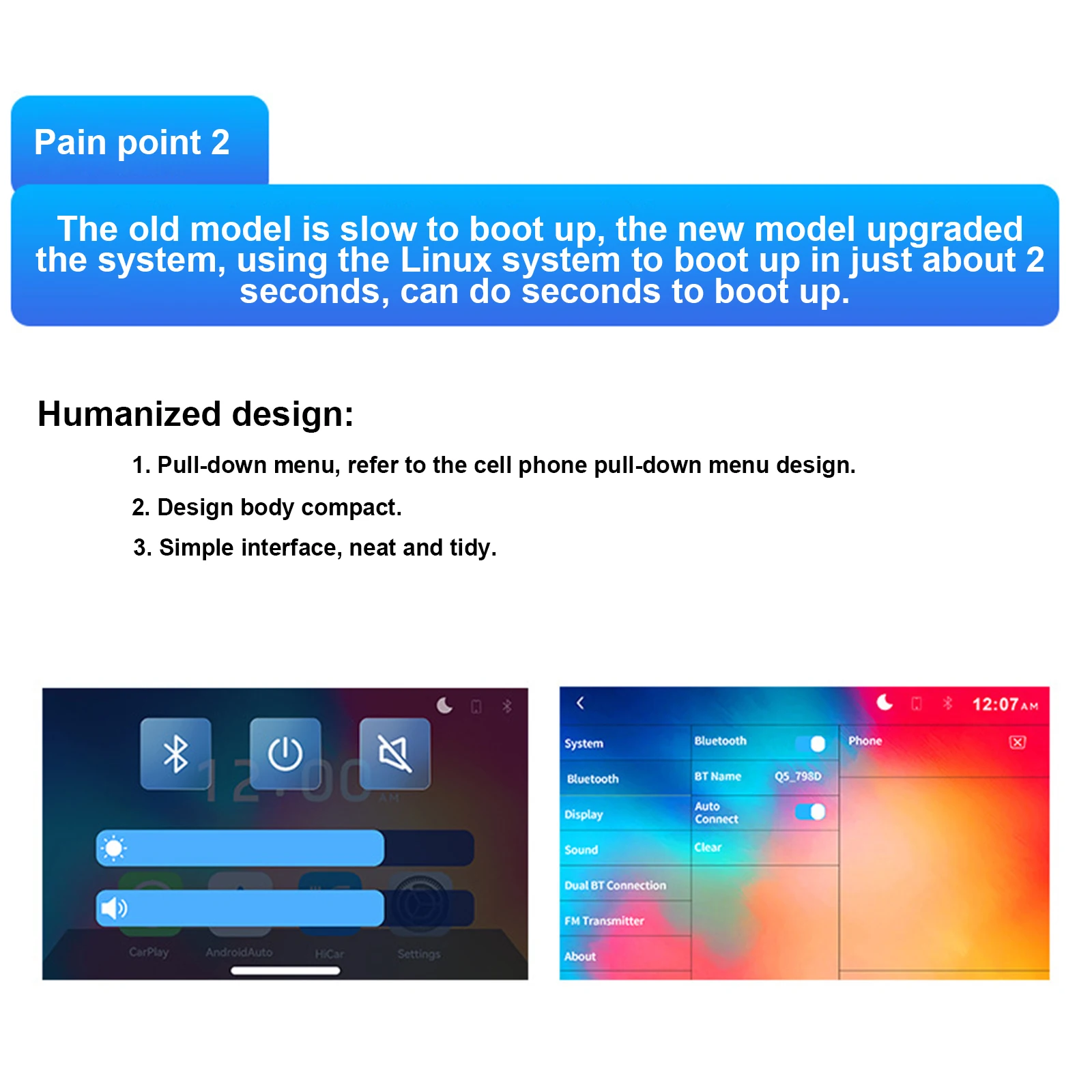 4. Двойной Bluetooth 5G и WiFi: Слушайте музыку и совершайте телефонные звонки через гарнитуру Bluetooth. В новой модели используется двойной Bluetooth, Bluetooth, подключенный к телефону, нет необходимости подключаться к хосту, чтобы решить проблемы с качеством звука громкости вызова. Новая модель обновила систему, используя загрузку системы Linux всего за 2 секунды, что можно сделать за секунды.