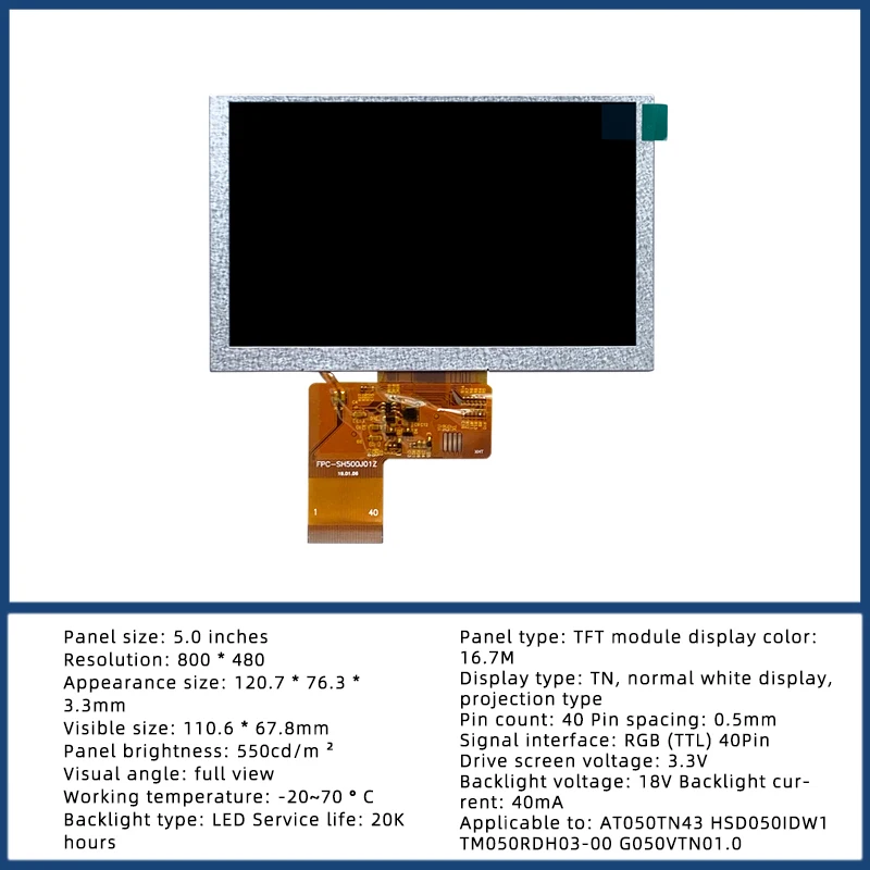 <span class="SnowProductCharacteristics_SnowProductCharacteristicsItem__titleContent__534v9">Interface</span> 40 pins Parallel RGB (1 ch, 8-bit) , FPC