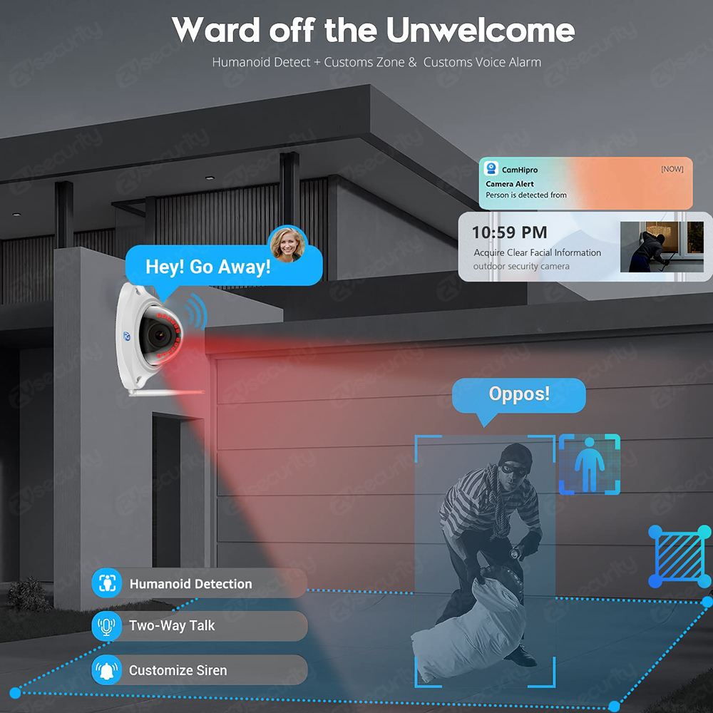 Как только злоумышленник будет обнаружен, сирена камеры срабатывает или активируется вручную, чтобы предупредить о возможном преступнике. Прекратить преступление до того, как оно произойдет. И на ваш мобильный телефон будет отправлено сообщение с предупреждением.
