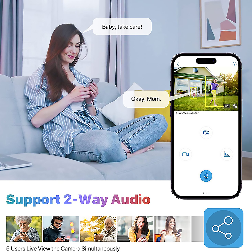 Поддерживает одновременный просмотр несколькими пользователями и несколькими устройствами. Вы можете поделиться камерой с семьей или друзьями. После совместного использования они смогут получить доступ к одной и той же камере одновременно, чтобы вы могли наслаждаться прекрасными моментами вместе.