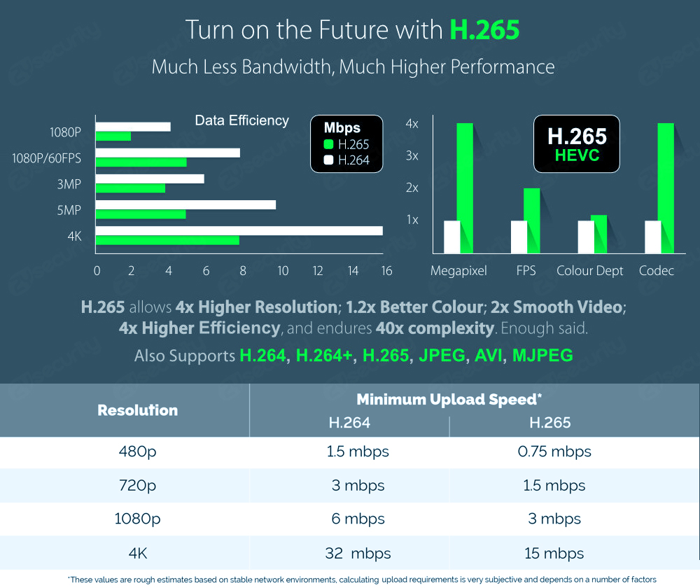 ● Алгоритм сжатия H.265, Эффективное снижение пропускной способности сети, поддержка двойного потока, поддержка мобильный телефон мониторинга