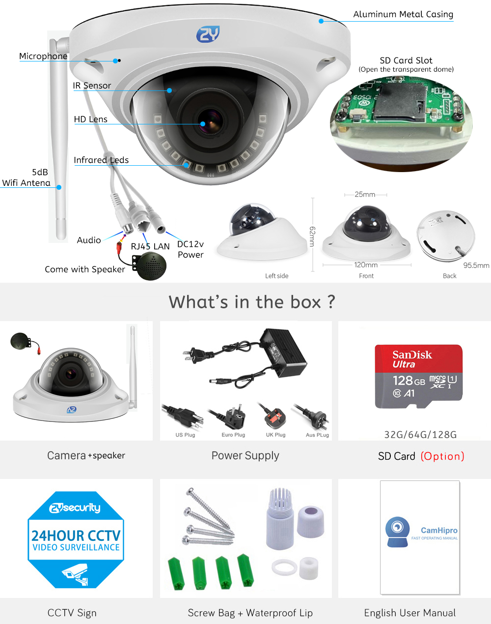 * Совместимость с TF-картой до 128 ГБ (опция): Используйте высокоскоростную SD-карту класса 10 или выше.