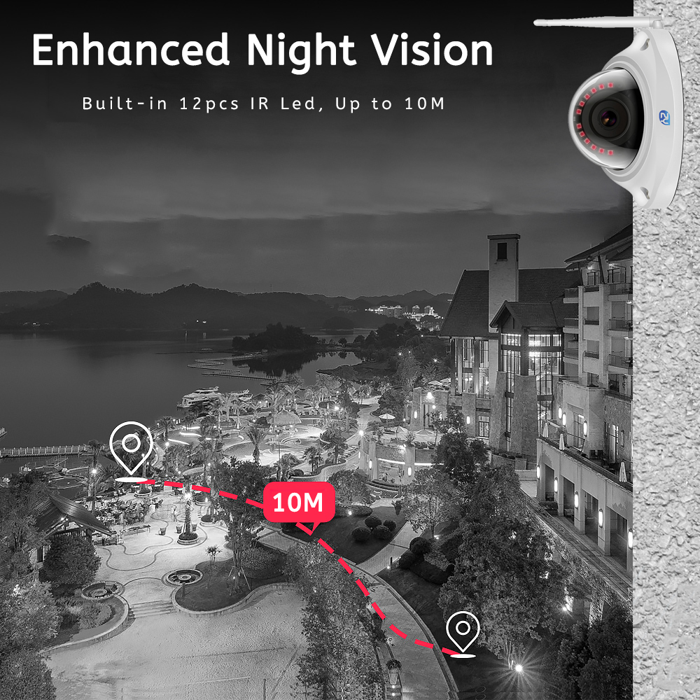 Встроенные 12 ИК-светодиодов, ИК-Ночное Видение до 10 метров для экстремально низкого покрытия, обеспечивающего высококачественный обзор вашего дома даже в темноте