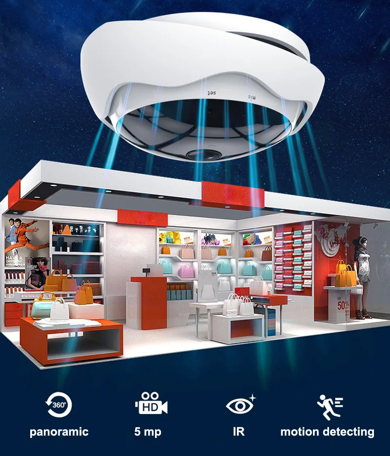 5-мегапиксельная панорамная IP-камера «рыбий глаз» с углом обзора 360 градусов