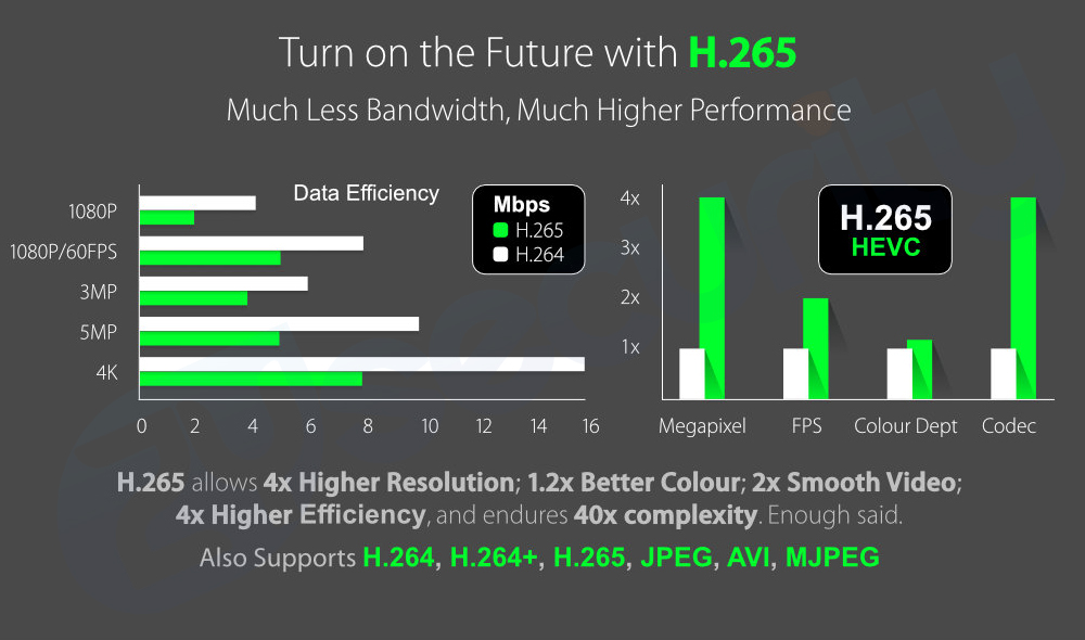 ●H.265 compression algorithm, effectively reduce network bandwidth, support dual stream, support mobile phone monitoring